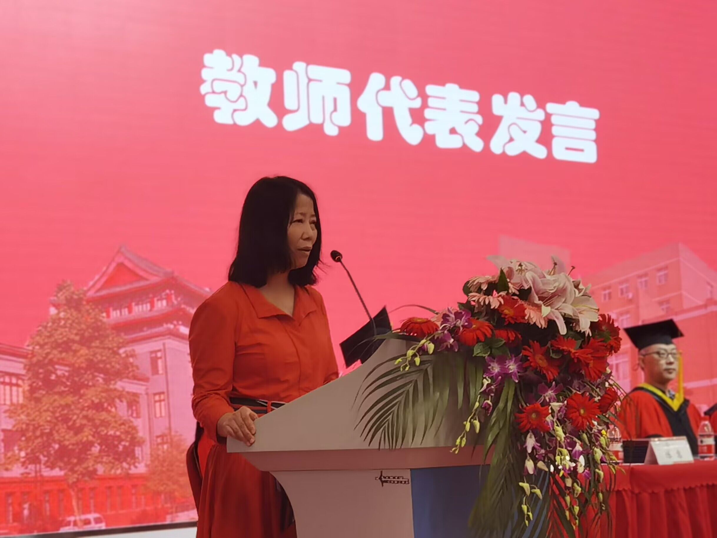 教师代表,食品工程系党支部书记、系主任、2019级班主任代表吕远平教授对全体毕业生表达了最真挚的祝福。希望毕业生们明德修身,争做德才兼备的新青年;志存高远,敢做奋进路上的追梦人;脚踏实地,勇做攀登险峰的奋斗者。