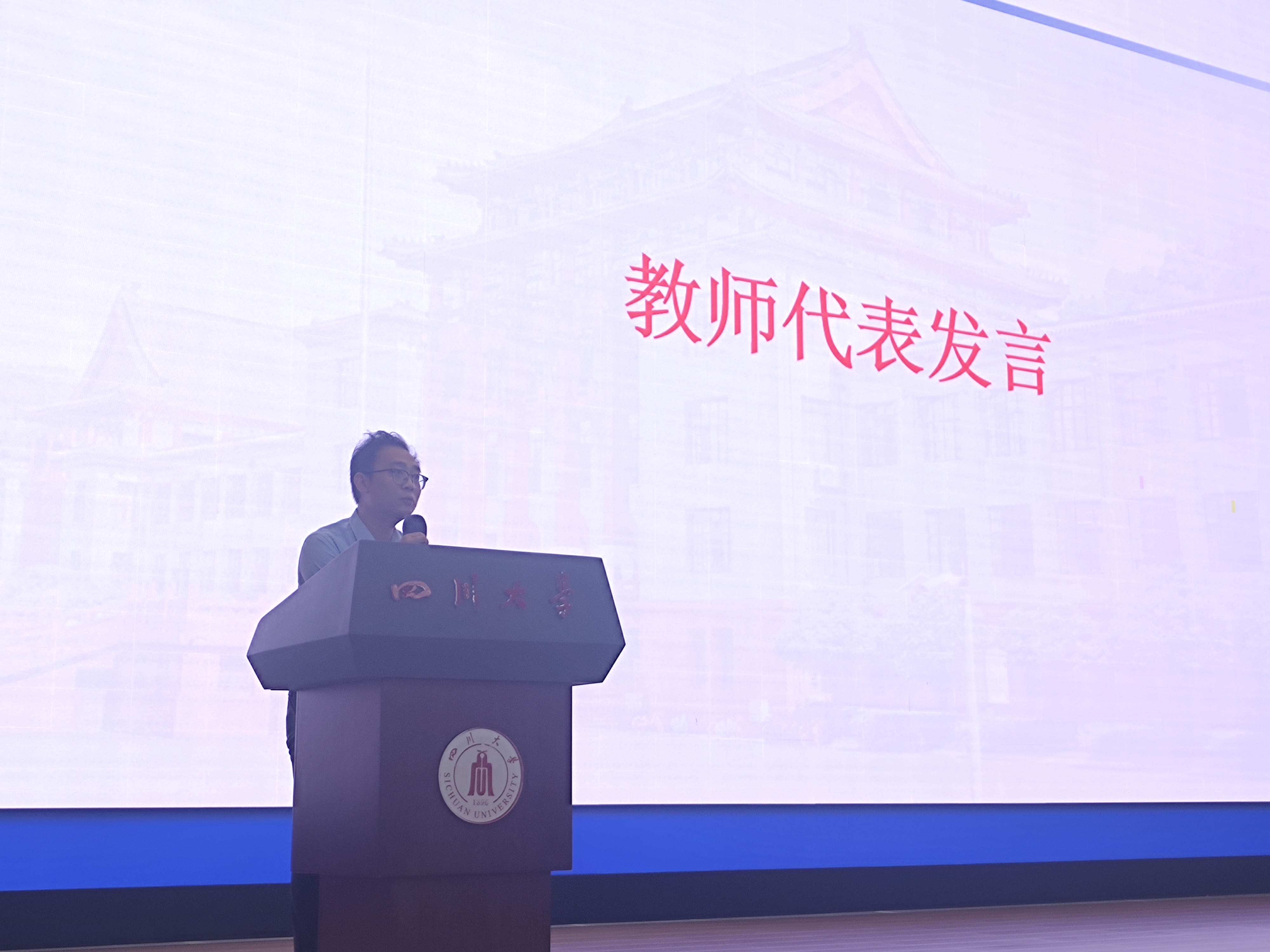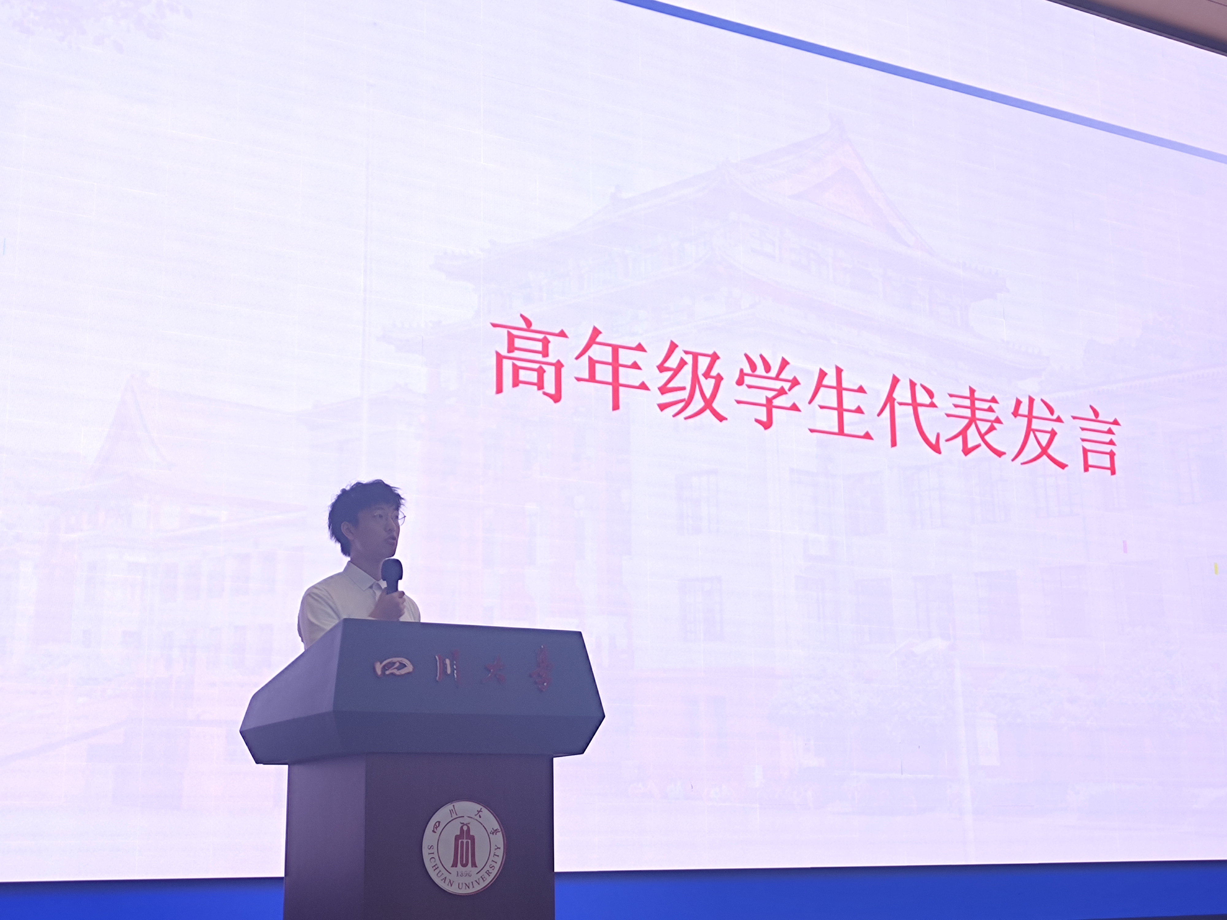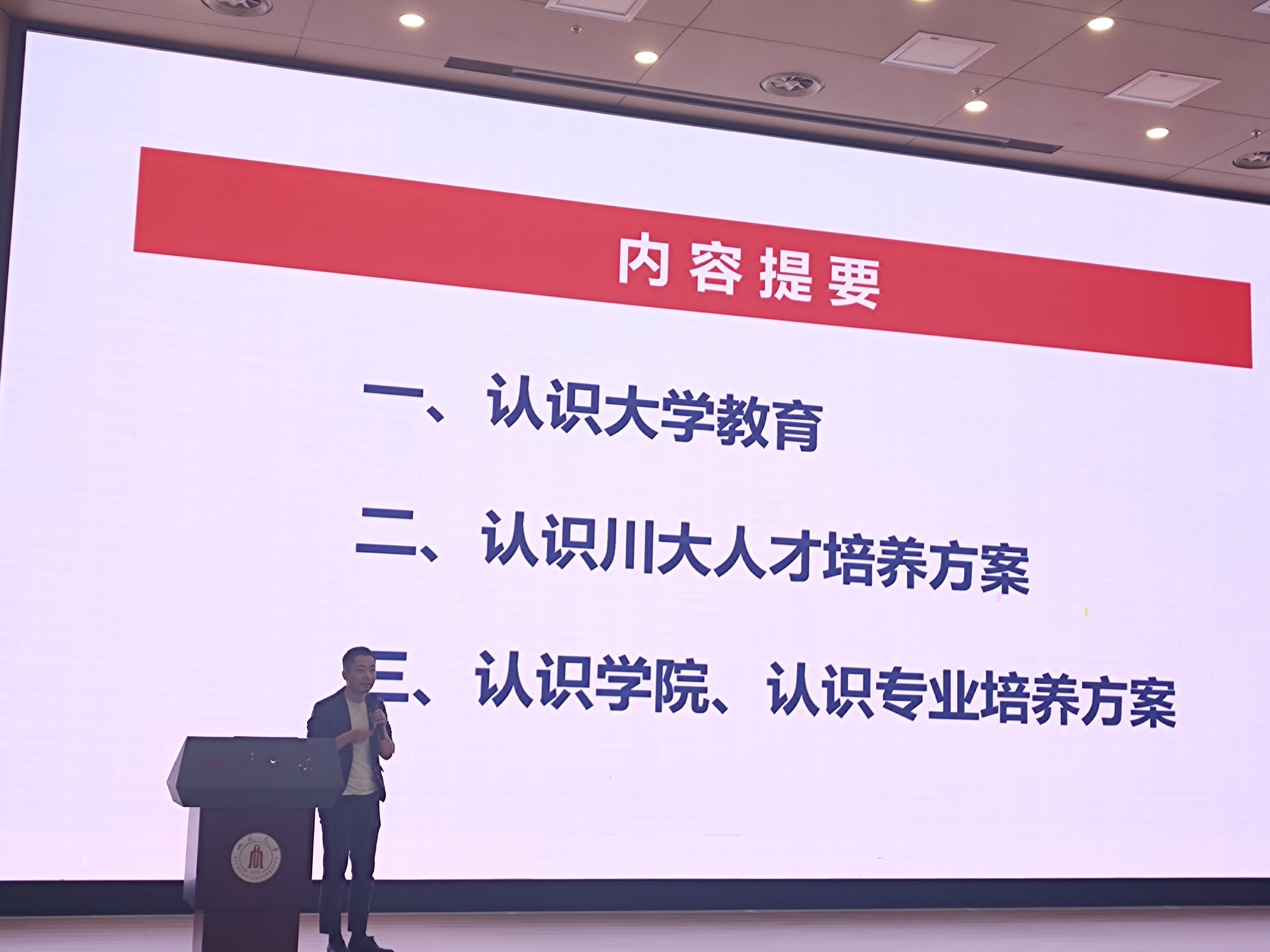 其次,教学副院长陈意教授以《打造一流本科教育、培养一流人才》为主题,从认识大学教育、认识川大人才培养方案、认识学院和专业培养方案三大方面全面向2023级同学详细地介绍了四川大学及365英国上市集团人才培养及相关要求。