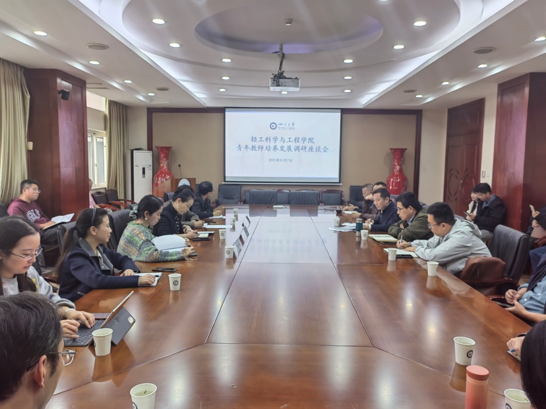 接着,学院党委李天富书记从学院青年教师队伍的整体情况,学院对青年教师在教学、科研以及个人发展方面的支持保障政策及近年来青年教师培养成效等方面进行了全面介绍。李书记指出,在取得成绩的同时,我院青年教师在职称晋升、考核评价、团队建设及职业规划等方面还面临很多困难,希望学校在制定相关政策时注重专业学科的差异性,以激励不同学科青年教师的成长。