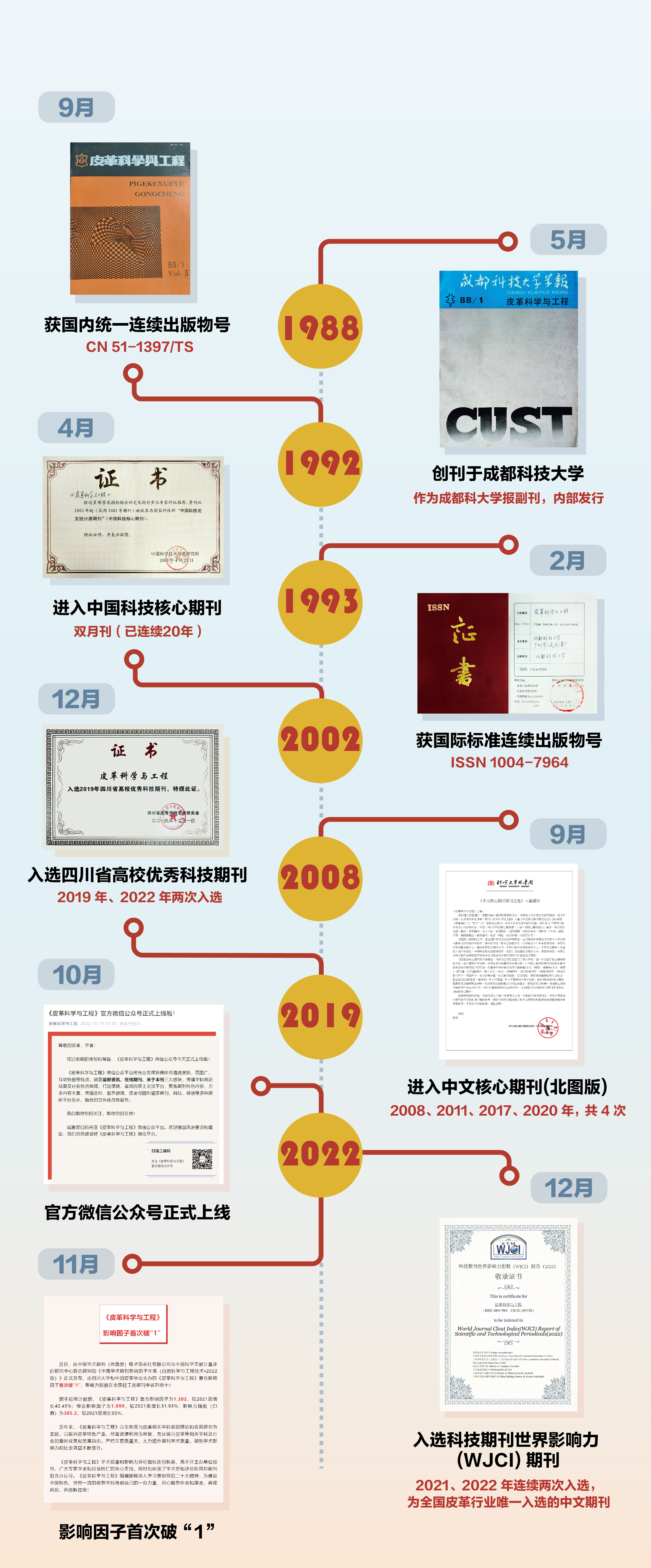 从1988年至2023年,《皮革科学与工程》已悄然走过三十五个春秋。三十五载的光阴不仅见证了历届编者团队的付出与更迭,更见证了无数老一辈皮革科技工作者为我国皮革学科建设与工业发展做出的宝贵贡献。期间,我们欣然看到,领域内涌现出新一批的青年皮革科技工作者,他们给《皮革科学与工程》的读者们带来了新技术与新视角,进一步推动了皮革行业的健康、创新、可持续发展。正是新老皮革行业同仁的支持与厚爱,让《皮革科学与工程》迈入了一个充满活力且稳步发展的壮年时期。