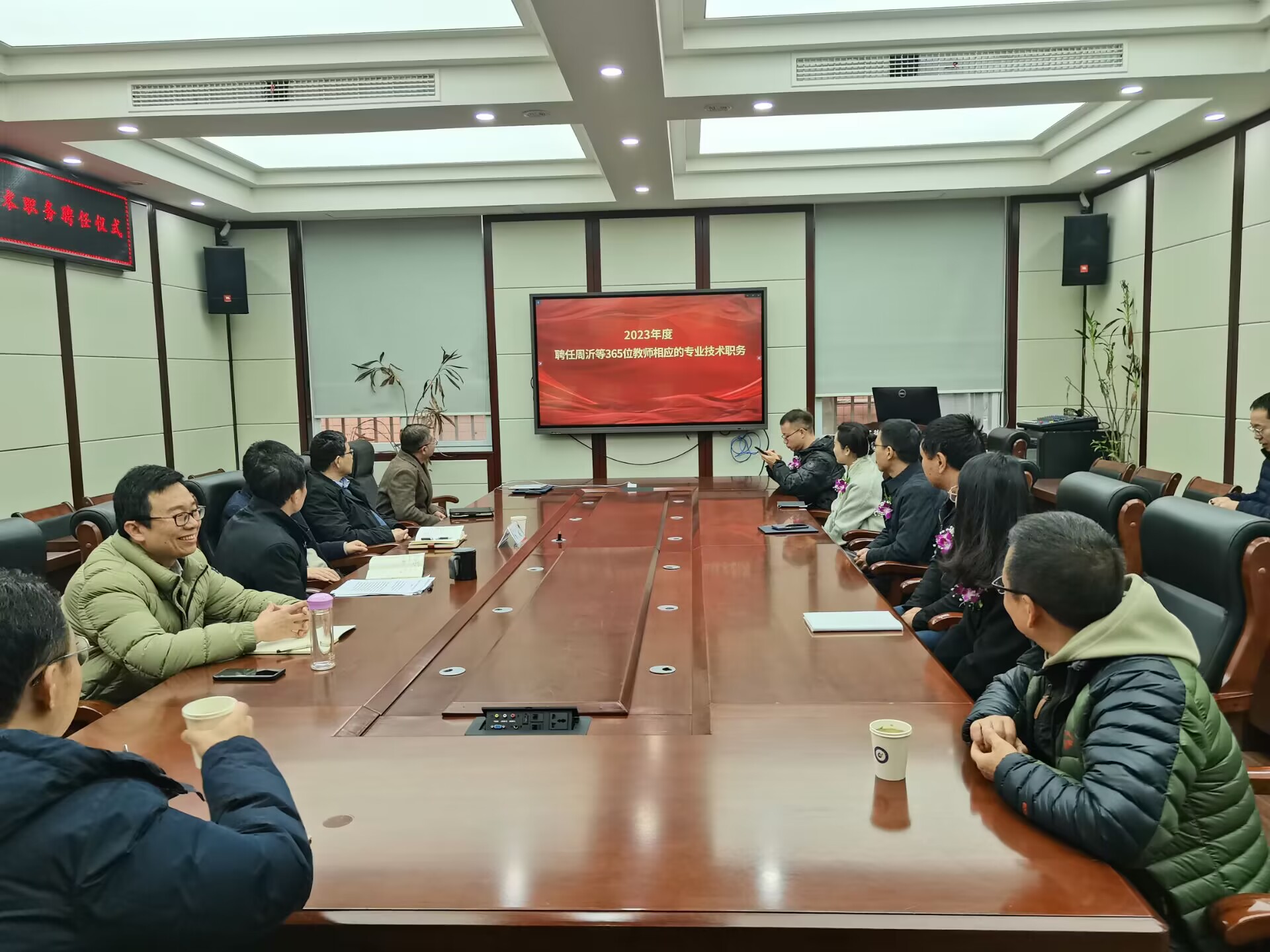 首先,李天富书记代表学院向2023年度新晋副高级专业技术人员表示祝贺,并向校领导介绍了2023年度学院职称评审总体情况。随后,李天富书记与彭必雨院长共同为2023年度新晋的五位副高级专业技术人员颁发聘书。