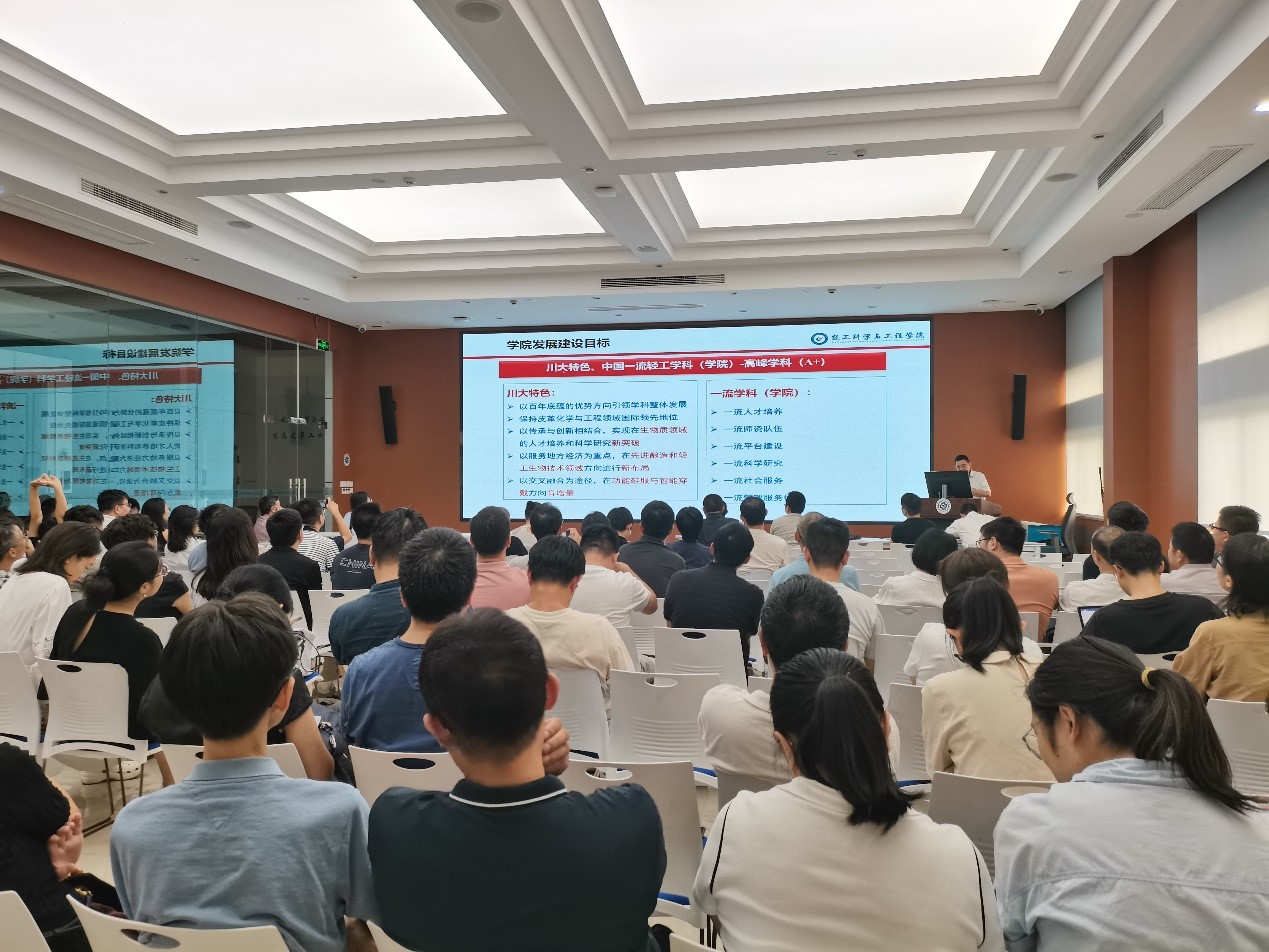 彭必雨院长结合学院实际和任期目标完成情况,向全院教职工报告了学院近年来取得的成绩、面临的挑战,提出了下一步学院工作的重点、思路及举措。彭院长特别强调学院在人才培养、师资队伍建设、科学研究、学科发展等方面的重点工作,希望全院教职工勠力同心、奋楫扬帆,共同为学院的高质量发展贡献自己的力量。
