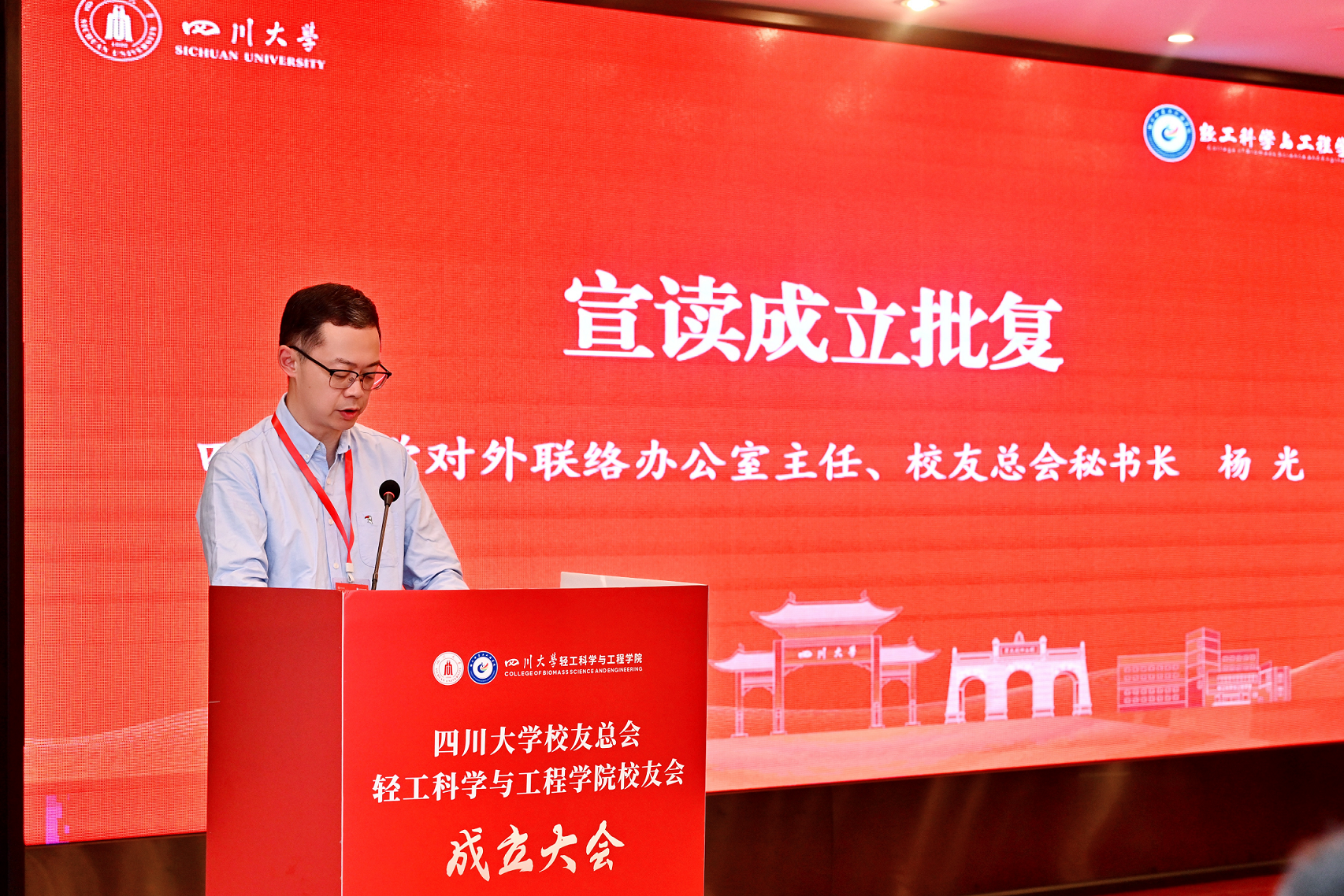 学校对外联络办公室主任、校友总会秘书长杨光宣读《四川大学校友总会关于同意成立365英国上市集团校友会的批复》及学院校友会理事会名单,并举行理事会成员聘书授予仪式。