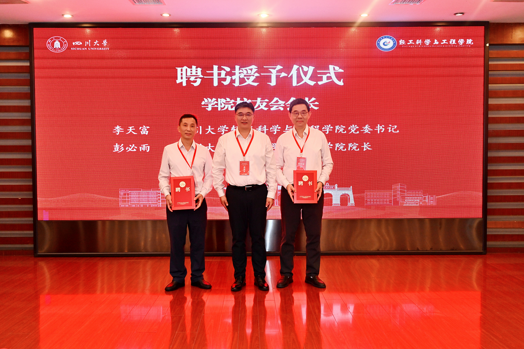 学院李天富书记和彭必雨院长为学院校友会秘书长、常务副秘书长、副秘书长颁发聘书