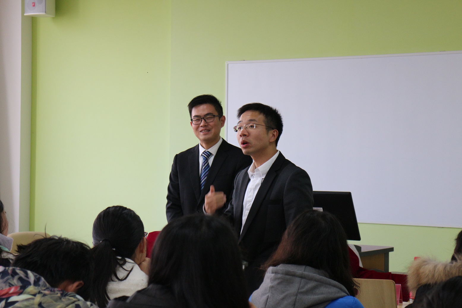 提问环节中,程林先生与曾维才博士积极为学生们解疑答惑,内容涉及大赛以及行业前景等相关问题。中午12时,宣讲会圆满结束,与会人员合影留念。