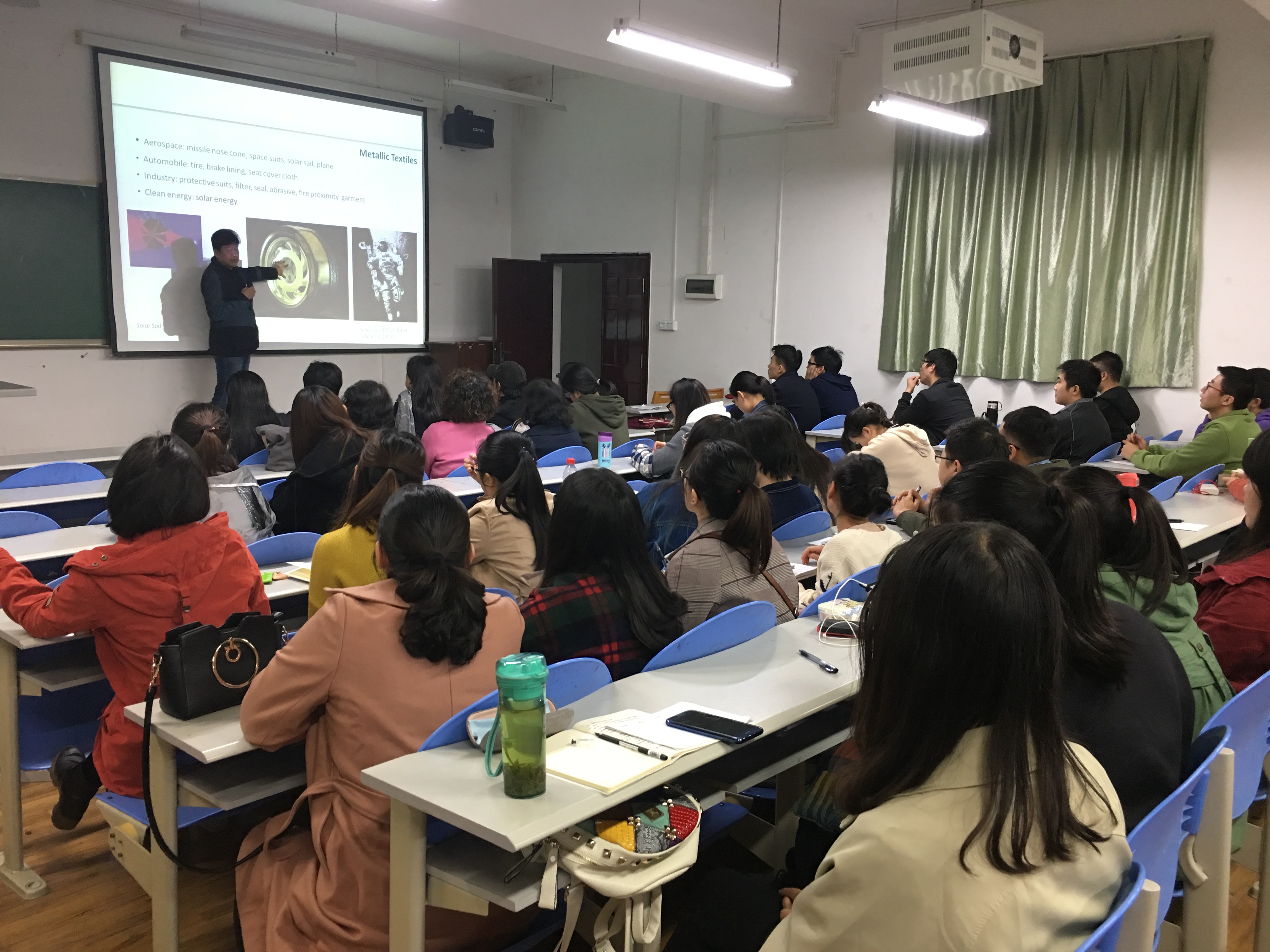2017年10月30日,香港理工大学的姜绶祥教授在纺工副楼205报告厅做了题为“金属镀覆技术与纺织服装设计”的学术报告。报告会由四川大学轻纺与食品学院纺织与工程系主任郭荣辉副教授主持并致欢迎词。纺织工程系及纺研所教师、本科生和研究生聆听了姜绶祥教授的精彩报告。姜绶祥教授主要从金属镀覆技术、金属镀覆纺织品的性能、设计应用等方面开展讲座,报告了他在金属镀覆纺织品绿色磁控溅射技术制备、性能及设计效果取得的最新研究成果。姜绶祥教授的报告幽默风趣,内容丰富,激起了老师们和学生的浓厚兴趣。师生踊跃发言提问,会后师生与姜绶祥教授进行了讨论交流。这次学生报告不仅丰富了我院师生的知识,也拓宽了我院师生的国际视野。 简历:姜绶祥博士,纺织及服装设计研究专家,香港理工大学纺织及制衣学系教授、博士生导师,纺织服装设计策展人,现为中国工艺美术学会会员,中国纤维艺术专业委员会常务理事,英国皇家艺术学会院士。研究工作涉及服装、家用和产业用织物的设计应用,传统和现代服饰研究。姜绶祥博士目前在物理与化学金属镀覆技术处理纤维材料开发功能和服饰设计应用上开展创新工作。研究成果获6项国家发明专利,发表SCI论文80余篇, 纺织创新、纤维艺术和纺织服装设计的作品在90多个展览中展出,曾与多位服装设计师合作参加国际服装展演活动,多件作品被维多利亚和阿尔伯特博物馆、中国丝绸博物馆及旧金山艺术博物馆收藏。