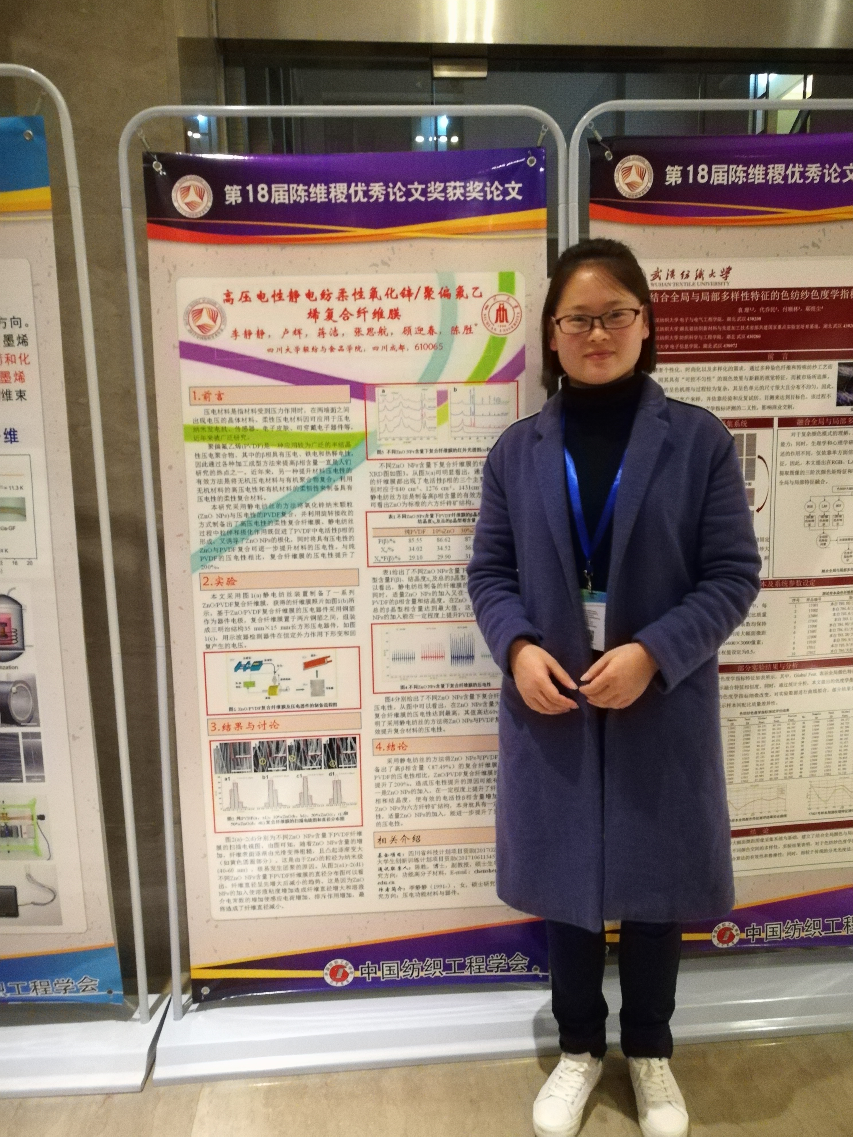 本届年会中,李静静同学等作者撰写的题为《高压电性静电纺柔性氧化锌/聚偏氟乙烯复合纤维膜》的论文荣获第18届陈维稷优秀论文奖(从全国283篇参评论文中评选出15篇优秀论文);蒋洁同学等作者撰写的论文被录入年会论文集,并在大会上以墙报方式了展示相关研究成果。