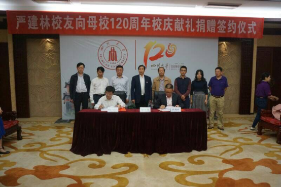 9月22日下午,严建林校友向四川大学120周年校庆献礼捐赠签约仪式在望江校区明德楼贵宾厅举行。四川大学校长谢和平院士、副校长李旭锋教授、副校级干部侯太平教授,四川省达威科技股份有限公司董事长严建林、公司总经办主任王光荣,以及学校校办、宣传部、外联办、轻纺与食品学院等单位负责人参加了签约仪式。仪式由侯太平教授主持。