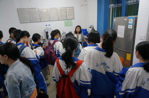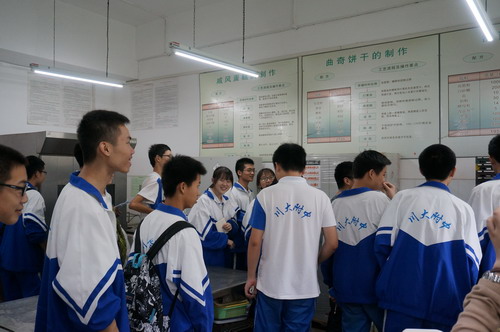 9月24日,四川大学食品工程系迎来了成都十二中“博士班”高中二、三年级的80多位同学,同学们首先观看了我院的宣传片,随后食品工程系钟凯老师、李欣蔚老师、何贵萍老师带领大家参观了食品分析检测实验室、食品微生物学实验室、烘焙食品工艺学实验室、罐藏食品工艺学实验室等食品科学与工程专业本科教学实验室,并为大家讲解了食品相关知识,让大家对食品专业有了一定的了解和认识。