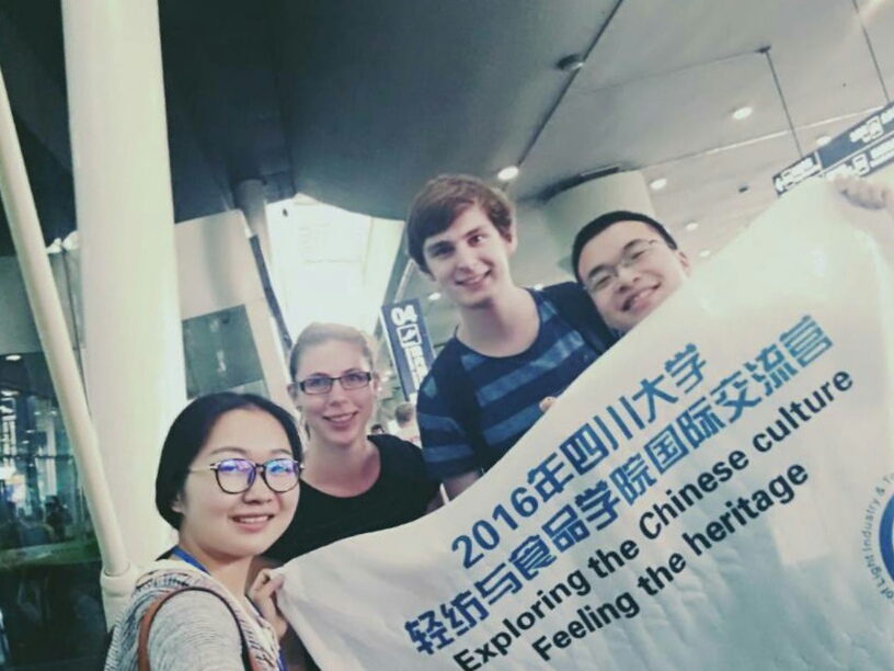 2016年7月1日,四川大学轻纺与食品学院国际交流营活动正式启动了,经过3天的交流互动,我院2013级和2014级的交流营志愿者同来自荷兰万豪劳伦斯坦应用科学大学(Van Hall Larenstein,University of Applied Sciences,The Netherlands)的2名同学产生了深厚的友谊,为接下来的交流打下了良好的基础。7月1日下午4点,在2013级徐弘毅、胡瑶两位同学的带领下,交流营员们从双流机场返回望江校区。期间2名荷兰同学跟随2名中国同学初步感受、了解了成都市以及学校周边的环境、景观,并尝试了一些本地小吃,然后在宾馆内好好休息,为第二天深入了解做准备。7月2日,在一群中国同学的陪伴下,2名荷兰同学游览了春熙路、大慈寺、太古里、盐市口、天府广场等成都市内具有标志性的景点,并到著名的“龙抄手”饭店品尝了各种经典的成都小吃。晚上7点,大家一起在一间公寓式水吧中玩游戏、畅饮、居高临下欣赏成都犹如纽约曼哈顿一般的夜景。随后大家环绕锦江欣赏廊桥、合江亭酒吧一条街的夜景,虽然累但快乐地结束了一天的行程。7月3日上午参观了望江公园,并且了解其来历、品味绿茶。下午便来到江安校区,途中欣赏了风景如画的江安河、长桥、明远湖等景点,然后与来自西班牙的同学以及其他诸多大二、大三的同学一起做游戏。冷餐会以后,便观看了四川大学国际课程周的欢迎仪式,欣赏了各种精彩的节目。最后大家一起有说有笑地回到望江,一天的行程圆满结束。7月4日中午,在徐弘毅、胡瑶两位同学的带领下,2位荷兰同学品尝了黄焖鸡米饭,他们使用筷子的技术、吃辣的承受能力都大大提升。营员们参加了学院的开营仪式,随后参观了食品科学与工程专业的实验室,并且与食品专业的老师深入沟通。晚上,钟凯老师和徐弘毅、胡瑶带领他们去尝试了干锅与卤鸡爪,没想到他们表现出极强的好奇心与承受力,非常厉害。经过这三天的接触,营员们建立了信任,沟通也完全没有阻隔,对接下来的活动充满期待!