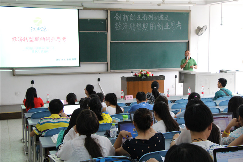 2015年7月16日10:00,我院食品科学与工程专业2015年国际教学周暨卓越工程师系列讲座之“经济转型期的创业思考”在四川大学江安校区综合楼C座106教室顺利举行。本次讲座由我院食品工程系与我院团委学生会联合主办,并邀请了四川江中源食品有限公司董事长黄道刚先生作为主讲嘉宾。本次讲座嘉宾还有黄道刚先生的盈棚管理团队,我院食品工程副系主任贾利蓉副教授,我院食品工程系何贵萍老师。首先,贾利蓉副教授为本次讲座致开场辞。接着黄道刚先生则以“梦想”为话题引入自己的人生经历,为何会选择进入食品行业,从创业最初到至今,黄先生明确指出做事贵在坚持。在讲到食品行业的变迁时,他提到自己企业也经历过两次比较大的转折,并为大家讲述了自己如何去寻找、发展商机。同时黄先生也指出未来食品行业发展食品安全、食品品质研发是重点,在演讲的最后他也分析了时代变迁过程中创业环境的变化。黄先生的奋斗、拼搏的精神,幽默风趣的语调,毫无保留的分享,赢得了同学们的热烈掌声。讲座最后,由贾利蓉副教授对本次讲座进行总结,并对同学们给予了中肯的建议与美好的祝福。本次讲座同学们都理解了脚踏实地和坚持的意义,也让同学们明白了交流沟通的重要性,令同学们获益匪浅。