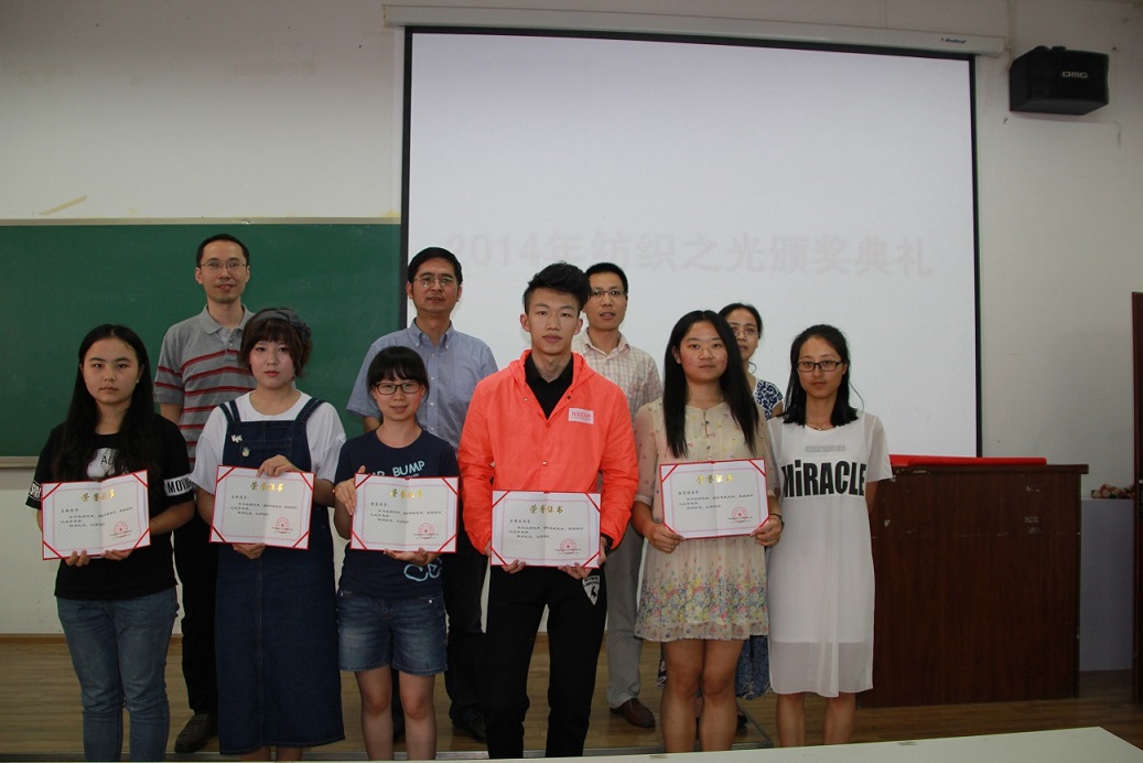 2015年5月20日,我院在纺工附楼隆重举行了2014年度“纺织之光”学生奖颁奖大会。纺织与服装工程系系主任兰建武教授、纺织与服装工程系党支部书记陈胜老师、轻纺与食品学院院长助理郭荣辉副教授参加了大会。颁奖大会由院学生科科长冯国涛老师主持。首先,纺织与服装工程系党支部书记陈胜老师宣读了2014年纺织之光教育基金会表彰决定并宣读了获奖名单。到场的各位老师为获奖学生一一颁奖。最后,由兰建武教授介绍了“纺织之光”科教奖的背景、意义及影响,并为获得奖励的学生表示祝贺,勉励大家继续努力,以更优异的成绩回报纺织教育基金会,汇报行业对高校人才培养的重视。同时,兰建武教授也获得了2014年纺织之光奖教金,再此表示祝贺。