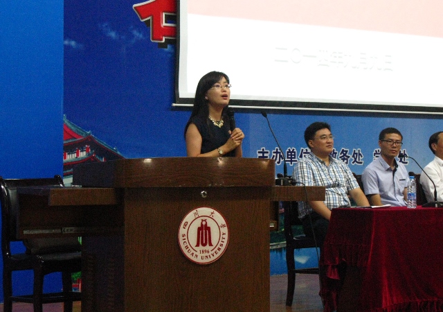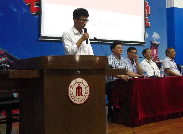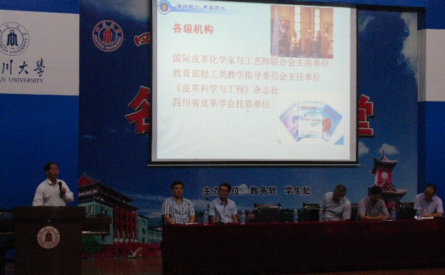 2014年9月9日下午3:00,我院2014级本科新生开学典礼暨入学教育大会在四川大学江安校区水上报告厅隆重举行。出席本次开学典礼的有学院党委赵毅书记,院长何有节教授,院党委副书记刘晓虎副教授,副院长兰建武教授,副院长何强教授,轻化工程专业2005届校友唐志海先生,教师代表杨璐铭老师,2014级辅导员李晓秀老师和向星烨老师。高年级学生代表程天鹏同学以及全体2014级同学参加了本次活动。开学典礼由党委副书记刘晓虎副教授主持。首先,赵毅书记发表了热情洋溢的致辞。他着重就能力培养、习惯养成、性格塑造等五个方面对新生同学提出了殷切的期望,并勉励大学生应学会学习和思考,为新生未来的发展指明了奋斗方向。何有节院长全面介绍了轻纺与食品学院概况及人才培养情况,让所有新生对学院的发展历程、师资力量以及科研办学成果有了进一步了解,并鼓励2014级同学们努力通过大学四年的历练去拓展更大的发展空间。教师代表杨璐铭老师结合自身经历,表达了对轻纺大家庭给予她优良成长环境的感恩,同时对新生提出了为人处事的六点希望,也为新生同学的大学生活寄予了美好的祝愿。全国五一劳动奖章获得者、轻化工程专业2005届校友唐志海先生作为学院优秀人才代表为大家提出了学习和生活方面的宝贵建议,他希望同学们能够学好专业知识,尽可能多地把所学知识应用到实践中来,并告诫同学们慵懒会磨灭激情,勤奋踏实才是大学之道。随后,2013级学生代表程天鹏和2014级新生代表常鸿博依次上台发言,展现出学院精神薪火相传、人才生生不息的优秀传统。开学典礼结束后,刘晓虎副书记从学院的培养和管理模式、学院主要的素质拓展平台等方面对同学们进行了入学教育,并希望同学们尽快完成角色转变,以包容的心态对待困难和矛盾,做胸怀大志并且脚踏实地的人。最后,李晓秀老师对同学们的日常管理、组织建设和近期活动安排等做了详细的说明。