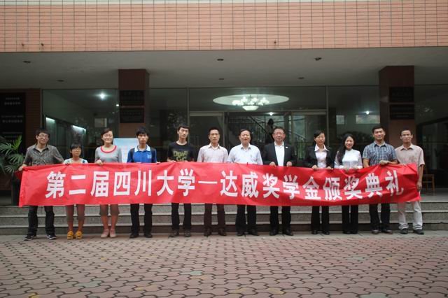 2012年5月28日下午17:00,第二届四川大学—达威奖学金颁奖典礼在皮革楼二楼报告厅隆重举行。参加本次颁奖典礼的有四川大学轻纺与食品学院院长、生物质与皮革工程系系主任何有节教授,四川达威科技股份有限公司严建林董事长,四川达威科技股份有限公司人力资源部韩嫄源经理、易秋菊小姐。颁奖典礼由轻纺与食品学院学生科科长冯国涛老师主持。颁奖典礼开始之前,何有节院长致辞。何院长首先代表四川大学轻纺与食品学院、生物质与皮革工程系热烈欢迎四川达威科技股份有限公司的领导和专家,对他们在四川大学设立达威奖学金表示感谢,也对通过笔试、面试、实习等环节脱颖而出的获奖同学表示祝贺。其次,何院长详细介绍了达威公司的发展历程、公司状况以及产品特点。尤其是达威公司非常重视与高校建立全面的人才培养合作机制。自2010年起,公司成为四川大学、陕西科技大学 “卓越工程师培养基地”之一,吸纳各届毕业实习生数名,提供了良好的实践机会,获得了学生们的一致青睐。达威公司与四川大学轻纺与食品学院、皮革系建立了良好的合作关系,合作内容包括科研、技术开发、设立奖学金、联合培养学生、建立国家级工程实践教育中心、卓越工程师实习基地、为我们在校生提供皮革化工材料等。最后,何院长希望同学们以此次颁奖典礼为契机,树建功立业之雄心,立报效祖国、振兴中国皮革之壮志,更加努力学习,积极工作,锐意进取,争取以更优异的成绩来报答皮革行业对我们的关心和期望。随后,四川达威科技股份有限公司董事长严建林先生作了讲话,严总首先谈了自己对大学生活的领悟,从对皮革不了解、对大学感到的沮丧,到逐步培养对皮革的兴趣与热爱,最后成为皮革行业的企业家,自己在这个转变过程中逐步成熟与发展。其次,严总从企业的角度谈了皮革行业的发展状况,目前国家对行业仍然非常认可与重视,皮革行业仍有很广阔的发展空间,对技术、人才的需求仍然很大。最后,严总感叹当前大学条件的优越,硬件设施的改善、实习就业机会的增多,给我们学校人才培养创造了优越的条件。希望同学们能充分利用大学丰富的资源,学好扎实的理论基础,增强专业技能,为皮革行业的发展积累知识与财富。接下来,严建林董事长、何有节院长、韩嫄源经理分别为获得金、银、铜奖的获奖学生颁奖。获奖学生代表2008级轻化工程专业杜金霞同学作了发言。奖学金的设立,体现了校友、国内外企业和社会对高等教育的高度重视、对皮革教育事业的关注和支持、对皮革及相关人才的重视和需求。极大激励和鼓舞着我院、我系学生勤奋学习、积极进取、报效国家、服务社会,皮革奖学金已成为学生心中重要的荣誉象征之一。