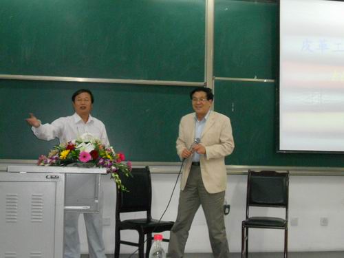 受四川大学轻纺与食品学院邀请,国家制革技术研究推广中心主任王全杰教授访问我院并作了“皮革工业是日不落产业”的主题讲座,陪同王教授一行的还有烟台大学皮革与蛋白质实验室老师段宝荣博士、硕士研究生牟宗波。本次讲座于2011年5月26日晚在江安校区综C405教室举行,轻纺与食品学院院长何有节教授作为嘉宾参加了本次活动,到场的还有轻化工程专业低年级同学。