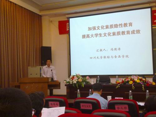 5月24日下午,四川大学2011年大学文化素质教育论坛在望江校区干部培训基地隆重举行,我院学生工作组冯国涛老师作为入选论文作者代表在论坛上发言。