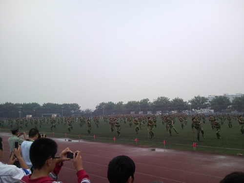 2009年9月25日上午9点,学校在江安校区2号运动场举行了盛大的阅兵仪式,标志着我校2009级新生军训工作取得圆满成功!我院男、女生连队分别参加了本次阅兵仪式中的棍术、匕首表演并获得较高评价。在此,学院对本次军训所取得良好成绩表示热烈的祝贺,并向参与军训组织工作的全体教师和学生干部致以诚挚的感谢!一、女生匕首操表演