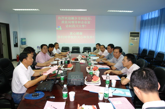 学校科技处在我院举行了“浙江省桐乡市—四川大学科技交流座谈会”。座谈会在热烈友好的气氛中进行。首先,桐乡市科技局局长沈炳林先生简要地介绍了桐乡市近几年的发展概况,并对该市的产业布局、技术需求等做了说明。接着,科技处主任冉智强副研究员、轻纺与食品学院院长陈武勇教授分别向客人介绍了学校、学院概况和拥有的科技成果等。生物质与皮革工程系但卫华、王坤余教授和纺织研究所所长朱谱新教授等应邀参加了座谈会,并与相关企业进行了交流。会后,桐乡市代表团一行参观了制革清洁技术国家工程实验室。 (但卫华)