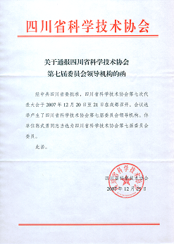 祝贺我院陈武勇教授当选四川省科学技术协会第七届委员 经中共四川省委批准,四川省科学技术协会第七次代表大会于2007年12月20日~21日在成都召开。会议选举产生了四川省科学技术协会第七届委员会领导机构,我院陈武勇教授当选为四川省科学技术协会第七届委员会委员。