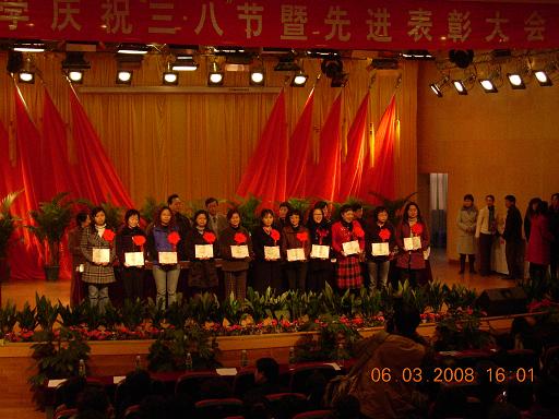我校李国英教授获巾帼建功立业先进个人表彰 2008年3月6日,校工会召开大会,“四川大学庆祝三八节暨先进表彰大会”。校党委书记杨泉明,副书记罗中枢,校工会主席蒋润书等学校各部处有关领导,各学院工会主席、女工委员和受表彰的先进单位和个人参加了会议。杨泉明书记和蒋润书主席分别讲话,祝全校女教职工节日快乐,合家幸福;同时也肯定了广大女教职工在学校的建设和发展中所做出的贡献,希望发扬爱岗敬业的精神,为学校的跨越式发展再创新功。我院李国英教授在此次表彰中获得巾帼建功立业先进个人称号。