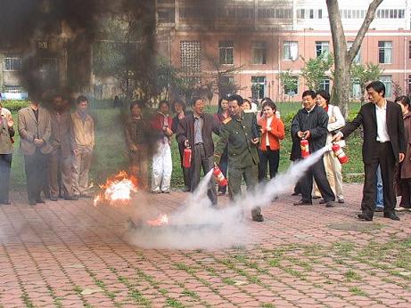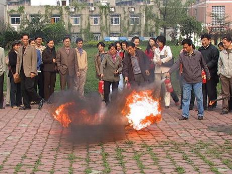 2004年4月9日下午,我院邀请成都市消防支队参谋曹启旭来我院作消防知识讲座。曹参谋用详实的事例,生动的语言,讲解了消防的重要性、成都市消防设施情况、火灾发生时的逃生技巧、如何正确报警、扑灭火灾的方法及消防的法律责任,并实地讲解灭火器的种类和使用方法,讲座之后学院领导、教职工实际使用灭火器灭火。