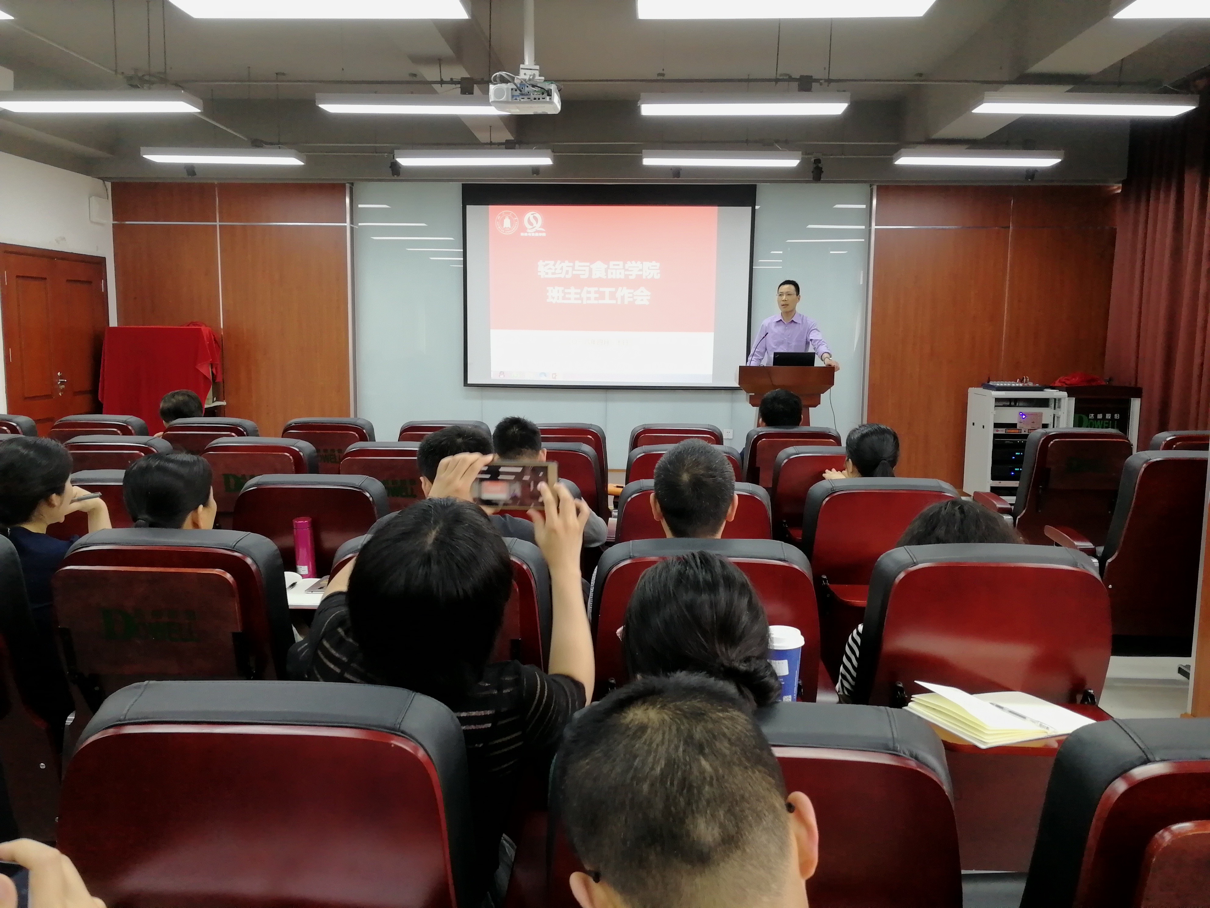 为全面落实学校“全员育人、全程育人、全方位育人”理念,进一步加强学院班主任工作开展的针对性、有效性,增强班主任与系、专业、辅导员之间的相互协作与配合,共同促进学生的全面成长与成才,轻纺与食品学院2018年春季学期班主任工作交流培训会于4月20日下午在皮革楼215报告厅顺利举行。学院何有节院长、冯国涛副书记、彭必雨副院长、各系系主任、教研室主任、各班班主任以及各年级辅导员参加了本次会议。