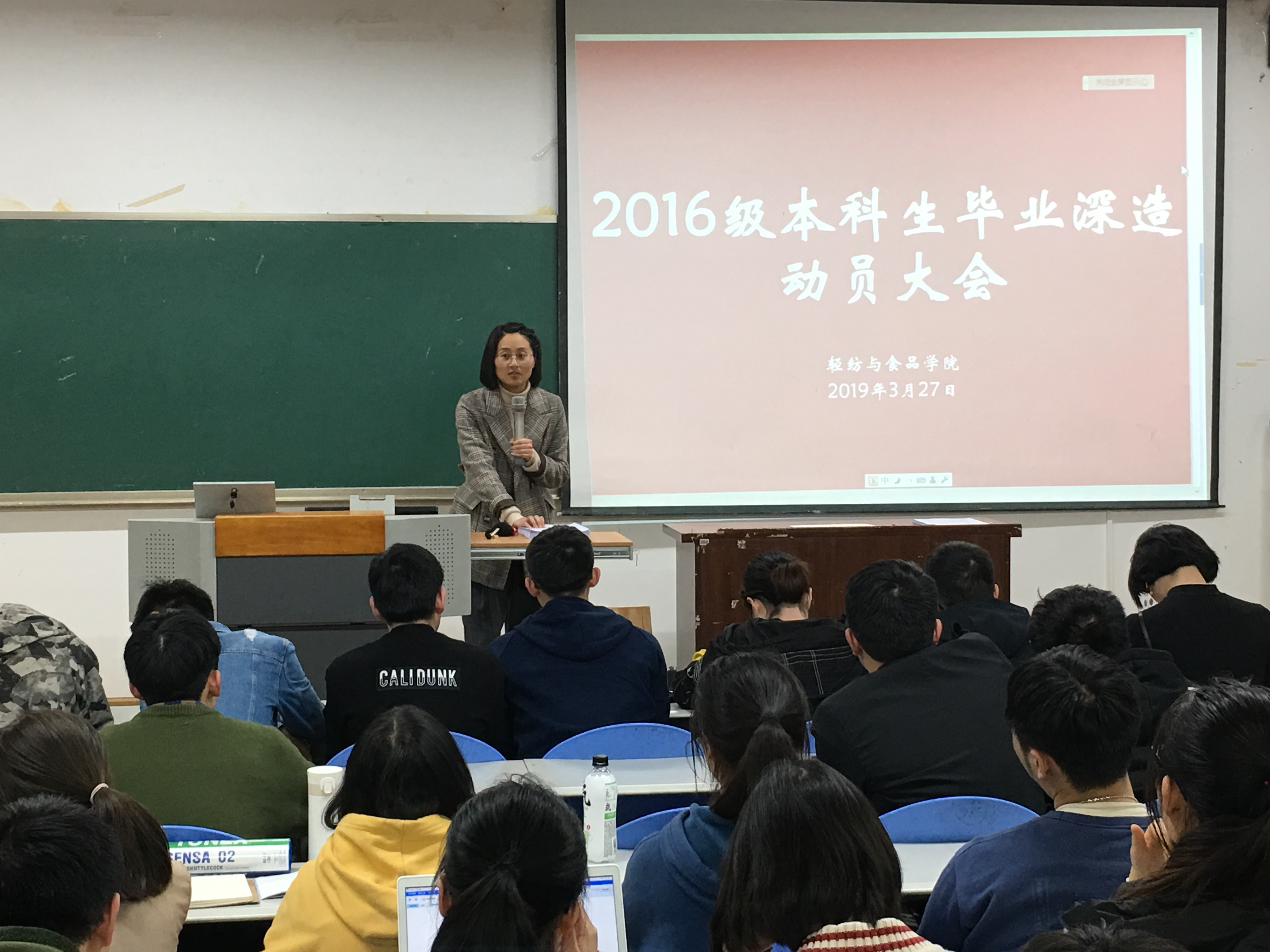 为提高学院本科生深造率,动员学院2016级学生作好深造计划,并为学院下一步加强深造精准指导提供基础,我院于2019年3月27日晚19时在纺工附楼205教室举行了2016级本科生深造动员大会。本次深造动员大会由轻纺与食品学院党委副书记冯国涛老师主讲,2016级本科生辅导员王舒灏老师以及2016级全体学生到场参加了动员大会。