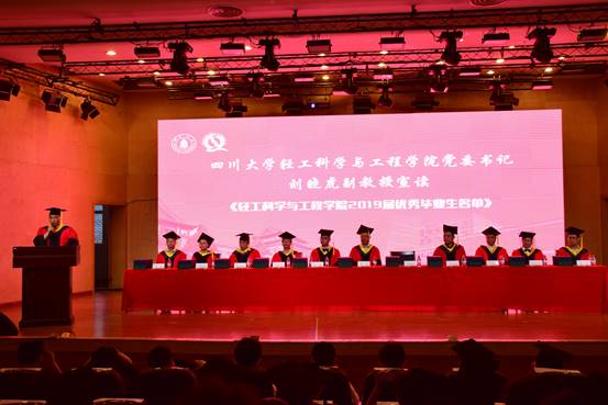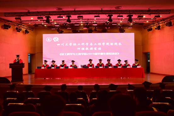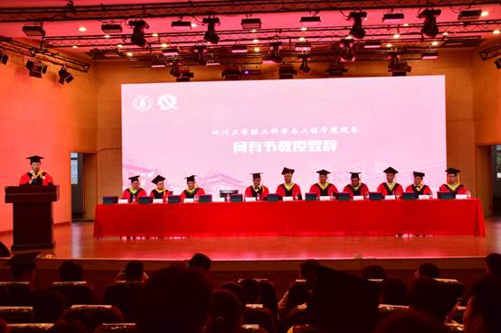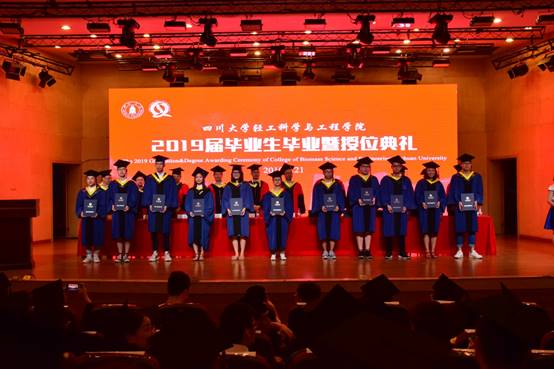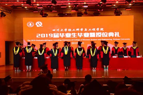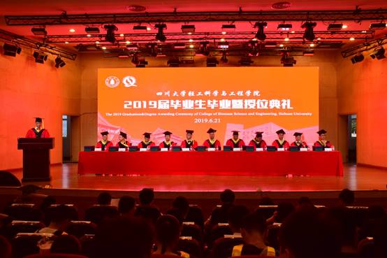 四川大学副校长梁斌教授,365英国上市集团学位评定分委会副主席、副院长何强教授,学院党委书记刘晓虎副教授,学院学位评定分委会委员、教授委员会委员何有节教授、彭必雨教授、单志华教授、朱谱新教授、李国英教授、周荣清教授、金勇教授、阎斌教授出席典礼并在主席台就座。教师代表、校友代表、学生家长代表、学生代表以及2019届全体毕业生参加了典礼。典礼由学院党委副书记冯国涛主持。