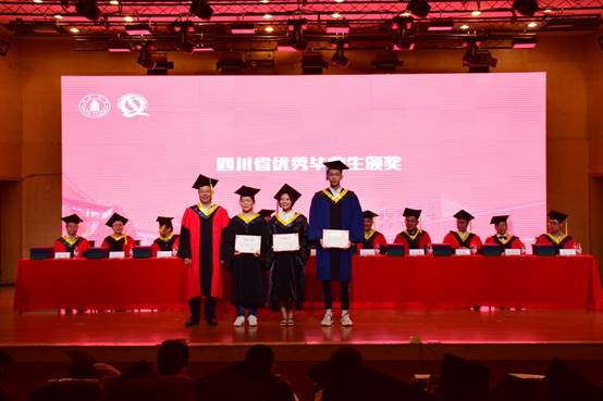 (梁斌副校长为四川省优秀毕业生颁发证书)