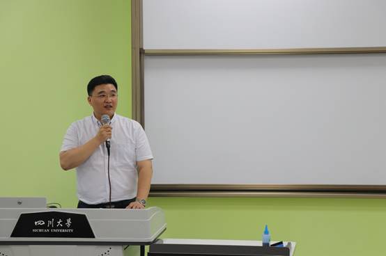 首先,学院党委书记刘晓虎副教授围绕三个关键词作了开班致辞。第一是“祝贺”,他代表学院党政、创新班的主体学院,向经过严格选拔进入创新班的同学以及开班仪式的如期举办表示最热烈的祝贺。第二是“感谢”,刘书记回顾了创新班的创建过程,由衷感谢四川大学把创新班的创建重任托付给我院;感谢兄弟学院和3个国家级平台的强势加盟,合力达成集全校生物质领域的优势资源,参与并推动实现国家生物质资源开发利用发展战略的共同愿景;感谢创新班创建过程中,学术领军人物、干部、师生的全勤付出和参与努力。最后是“期待”,即基于已获得的2个国家级“新工科”研究与实践项目的强力支撑,组建了一支由高层次人才领衔的指导教师队伍,拥有一批有志于从事生物质资源开发利用的优秀学生,期待创新班的建设与发展能够成为中国同类高校“新工科”建设的范式和模板,期待历届创新班能够成为学校建设“中国特色、川大风格”世界一流大学进程中不可忽视的新势力和排头兵。