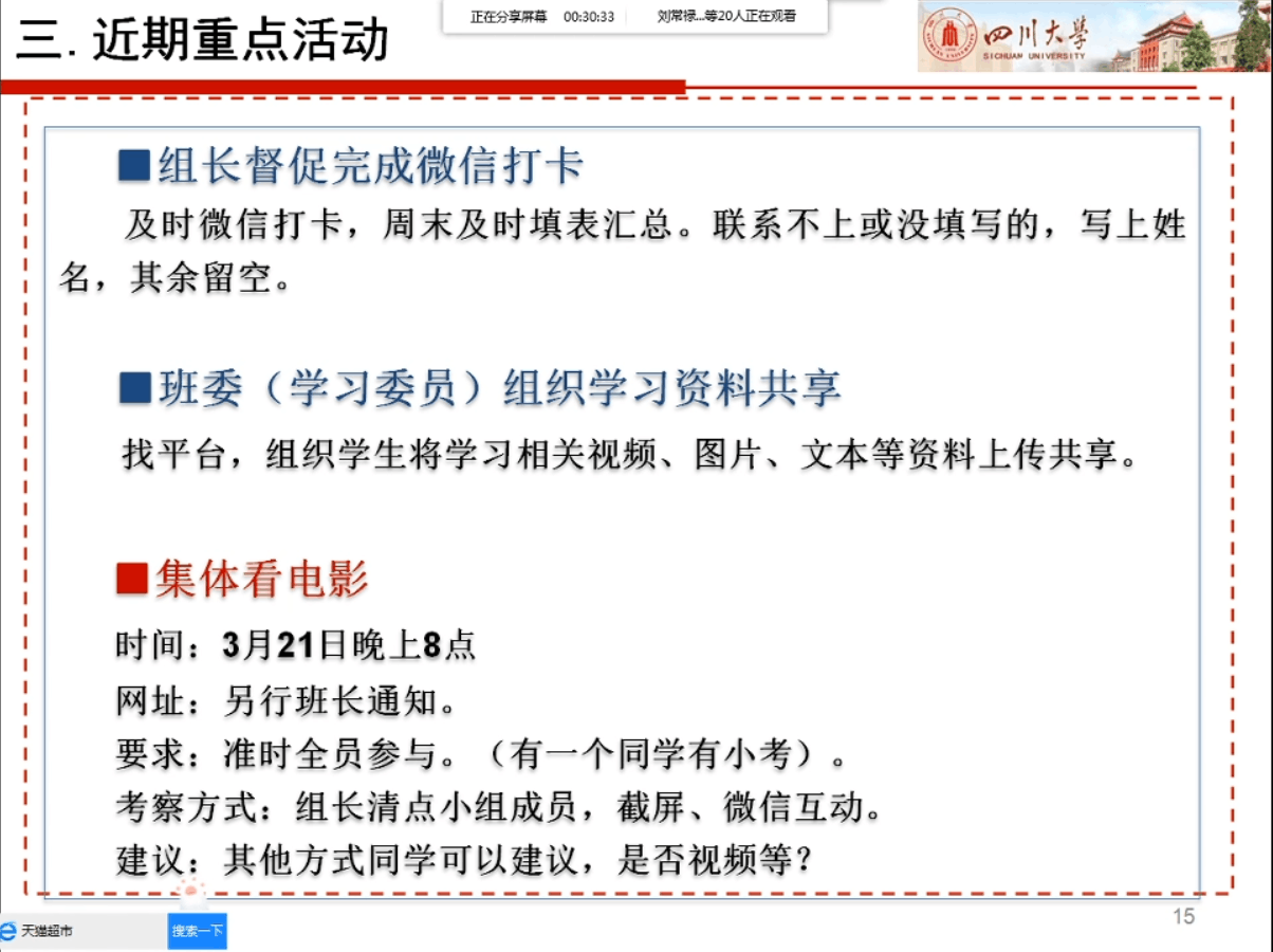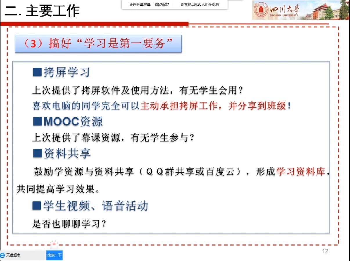但年华老师组织召开第二次线上班会
