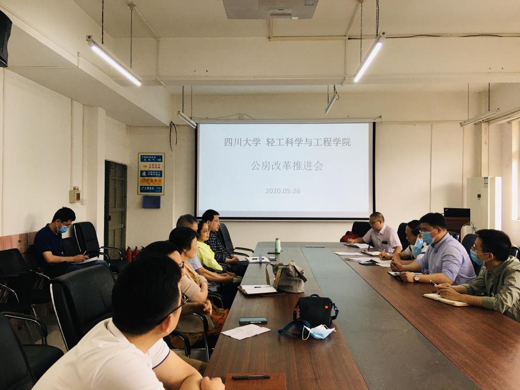 为推进四川大学公房改革,优化公房资源配置,提高公房使用效率,加快学院学科建设与发展,2020年5月26日,学院党委书记刘晓虎副教授、院长何有节教授、冯国涛副书记、公房改革小组成员、纺工楼科研用房教师代表等,在食品系会议室召开公房改革的推进会,本次会议由院长助理周建飞教授主持。