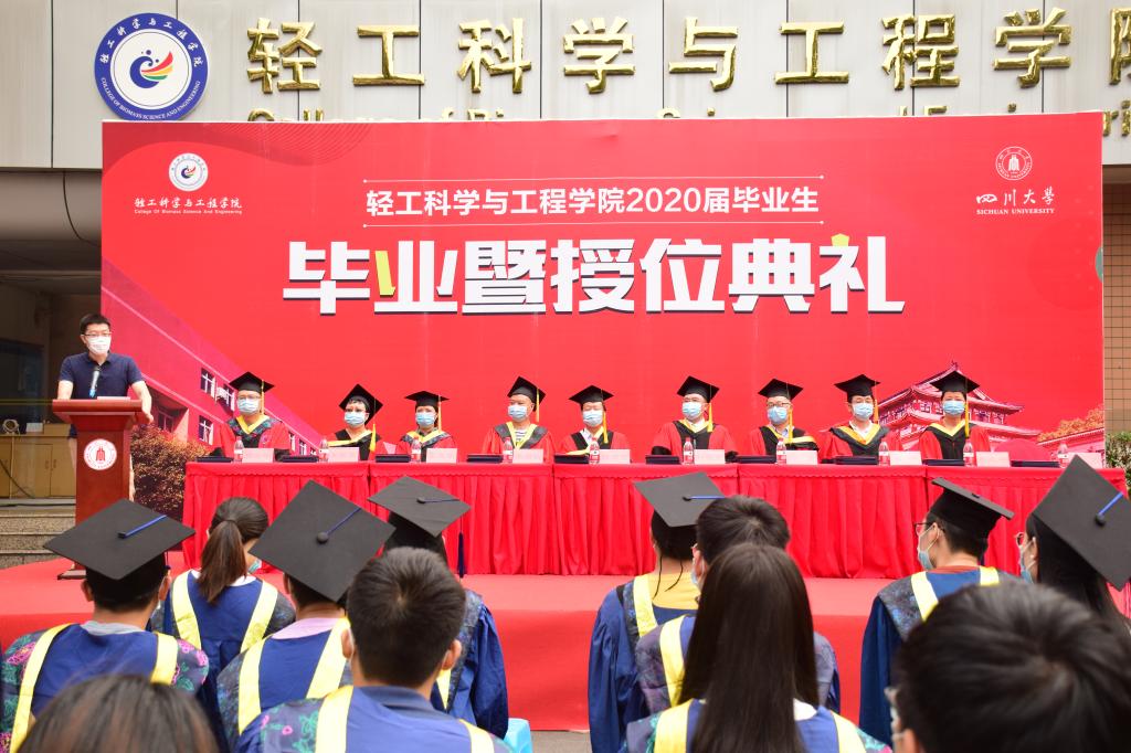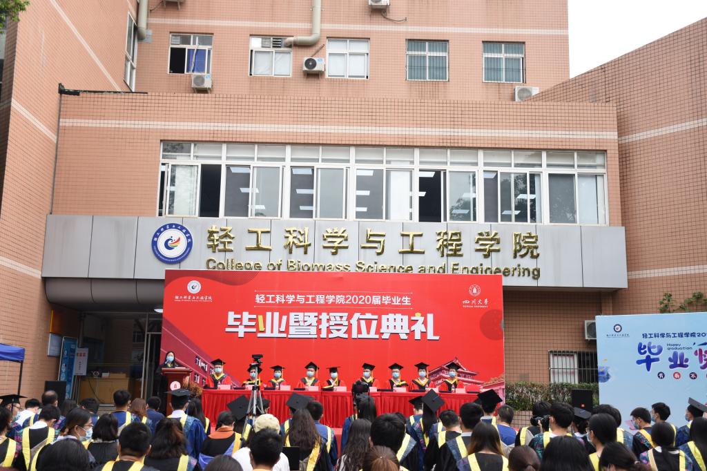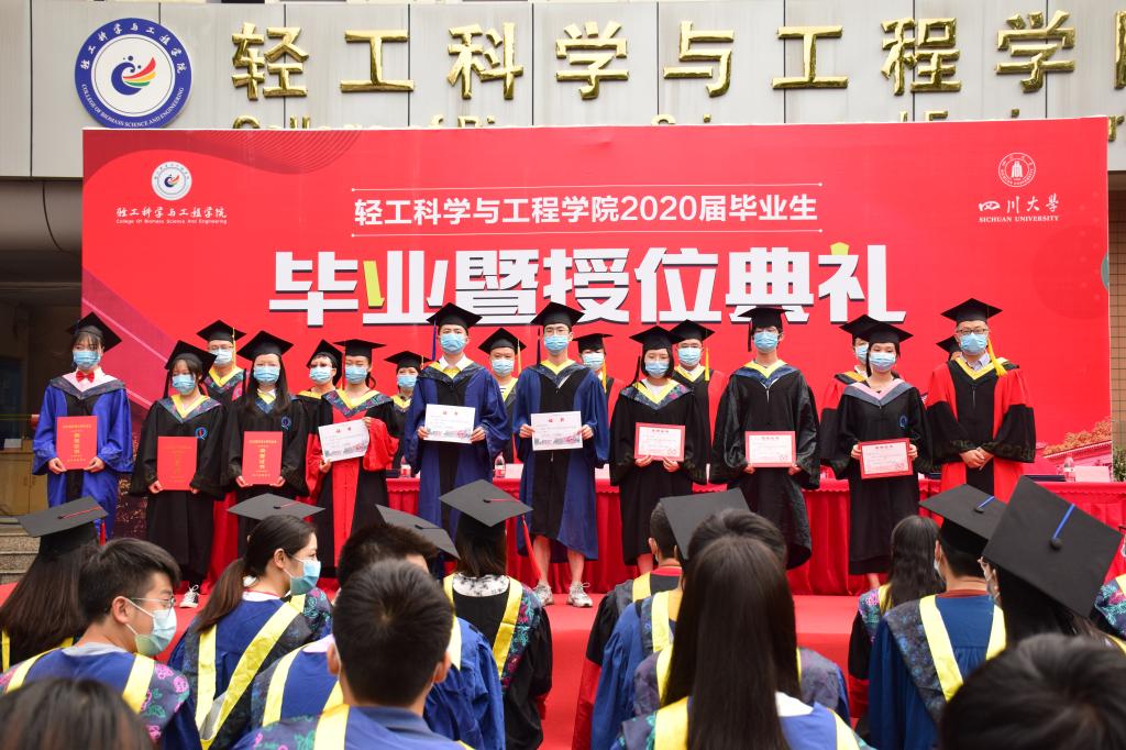 2020年6月19日上午,四川大学365英国上市集团2020届毕业生毕业暨授位典礼在纺工楼前隆重举行。因疫情防控原因,本次典礼采用现场与网络直播相结合的方式进行。