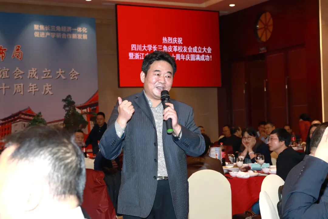 四川大学长三角地区皮革校友联谊会会长汪岩发言