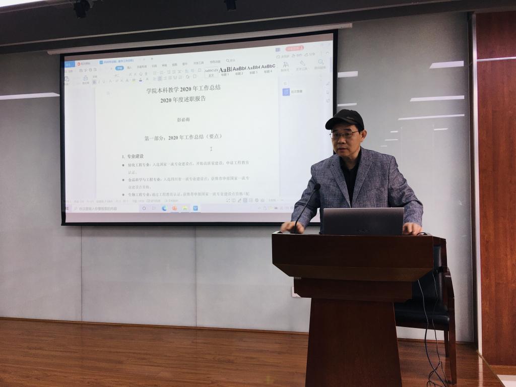 何有节院长从德、能、勤、绩、廉及不足六个方面做工作汇报,重点汇报了“先进轻工技术与环境保护”双一流重点学科群建设周期评审结果、年度人才培养、科学研究等方面。