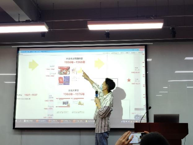 随后,2020级材料工程专业博士研究生王维杰同学以“从中国人民站起来到组织起来看中国共产党领导下的民族崛起之路”为主题进行宣讲。王维杰同学讲到,本次宣讲主题其实是引自毛泽东主席“中国人民从此站起来了!”和习近平主席“中国人民已经组织起来了!”这两句话,阐明了我国已经处在不同的历史时期的同时,也表明了中国共产党在我国不同历史阶段的任务。通过对中国共产党的百年历史进行梳理,王维杰同学深情讲述了为什么中国共产党能带领中华民族走向崛起的历史必然。