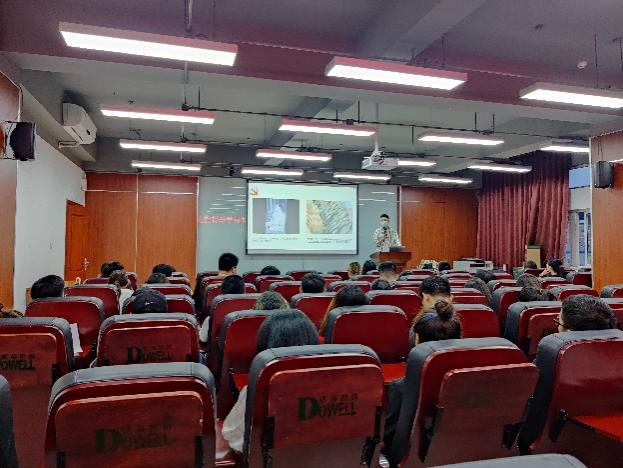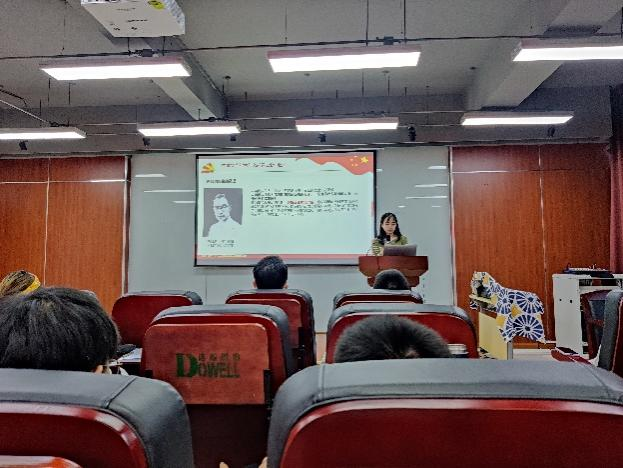四川省共青团新时代文明实践青年宣讲分团成员、2020级轻工技术与工程专业硕士研究生杜沁岭同学以“学深悟透,坚定理想信念;奋发有为,践行初心使命”为主题首先进行宣讲。以共产党为什么能建立新中国为导向,以党史故事为依托,杜沁岭同学从共产党自成立以来坚定捍卫国家民族利益的决心、解决农民土地问题、实行高度民主政策制度、共产党人自身的高度廉洁四个方面,带领现场同学们一起从历史中寻找中国共产党为什么能的答案。此外,作为四川省共青团新时代文明实践青年宣讲分团成员,结合自身,杜沁岭同学还向现场的党员同志们分享了新时代党员青年应该如何学习党史的经验。