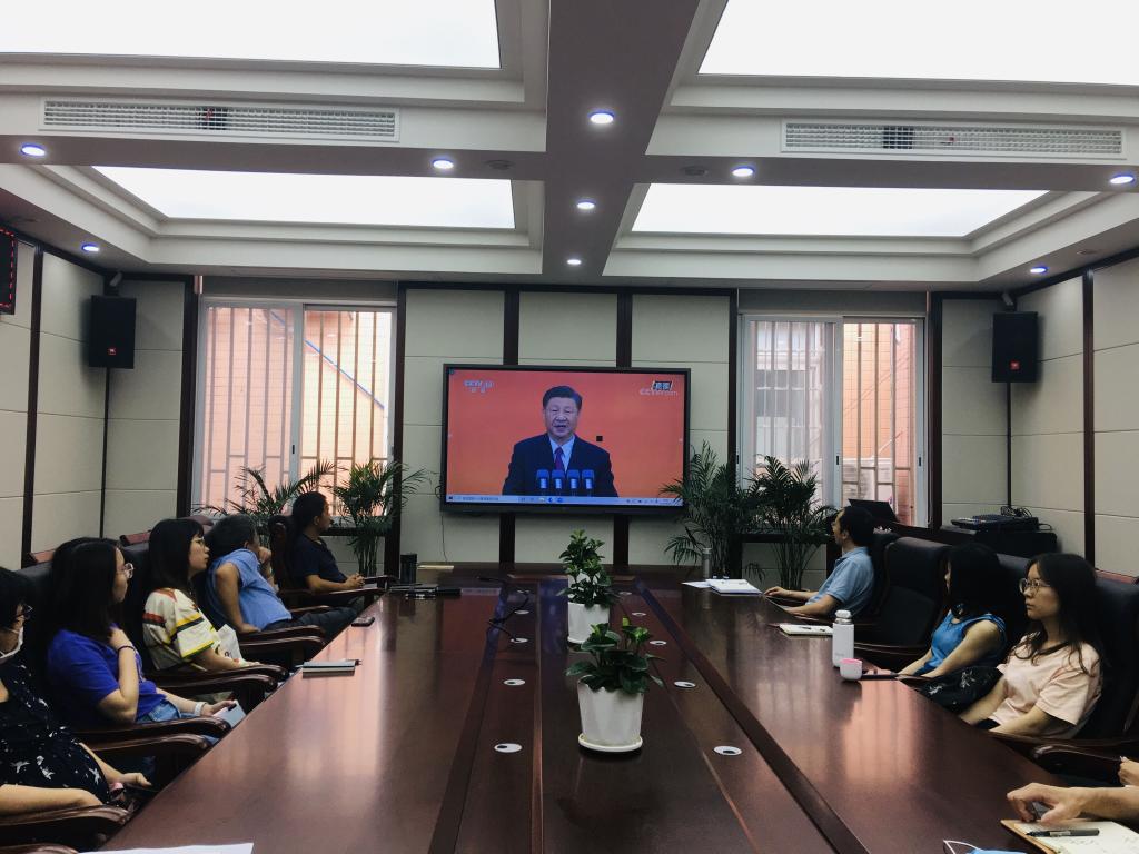 6月29日上午,“七一勋章”颁授仪式在人民大会堂金色大厅隆重举行。中共中央总书记、国家主席、中央军委主席习近平向29名“七一勋章”获得者颁授勋章并发表重要讲话。学院党委委员、科级干部、支部负责人、党员代表在纺工附楼205会议室集体收看“七一勋章”颁授仪式。