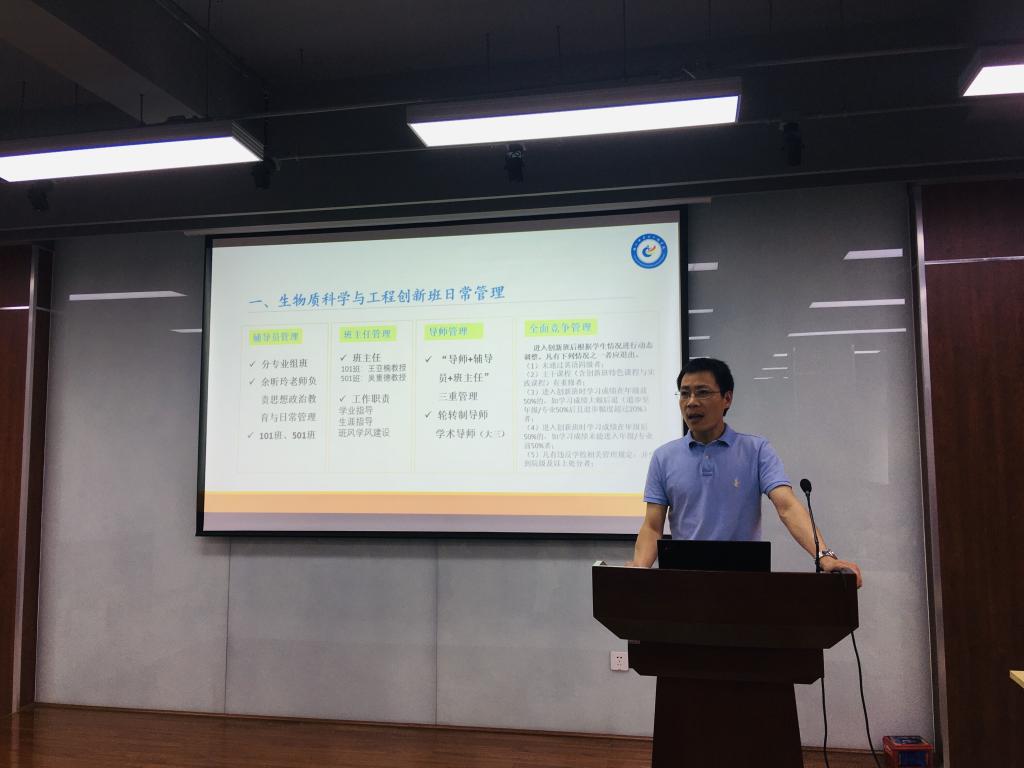 接下来,生物质科学与工程系主任林炜教授和党委副书记冯国涛老师分别介绍了创新班的培养方案与管理方案。