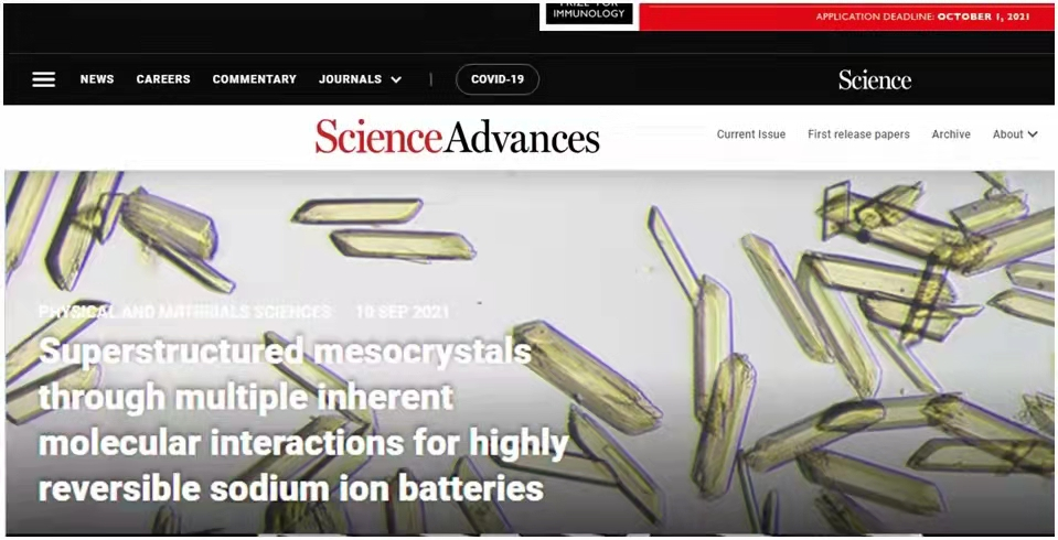 近日,我院郭俊凌教授团队与我校材料科学与工程学院吴昊教授、张云教授团队合作,以植物多酚基础结构单元为核心材料,利用植物多酚天然的物理化学性质,构建了类蛋白类核酸界晶超结构,相关研究成果以我院为第一单位作为在线封面论文发表在国际顶级期刊《Science Advances》上,题为“Superstructured mesocrystals through multiple inherent molecular interactions for highly reversible sodium ion batteries”。我院王晓玲(副研究员,专职科研)、何云翔(助理研究员)、我校材料学院2018级硕士研究生邱小玲为共同一作,吴昊教授,张云教授和郭俊凌教授为该论文的共同通讯作者。加拿大英属哥伦比亚大学Orlando J. Rojas教授,维多利亚大学Ian Manners教授等国际著名学者也参与了部分工作。该项目获得了国家自然科学基金委、国家“双一流”重点学科建设经费,制革清洁技术国家工程研究中心、高分子材料工程国家重点实验室、国家博士后基金、四川省博士后研发基金等的支持。