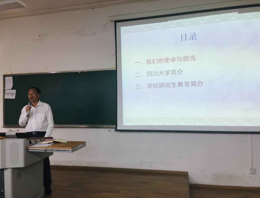 院长何有节教授从使命与担当、四川大学近年取得丰硕成就、学院研究生培养、学科建设与科学研究等方面向2021级同学做了详细全面介绍,勉励同学们踏踏实实做人、认认真真做学问,德智体美劳全面发展。