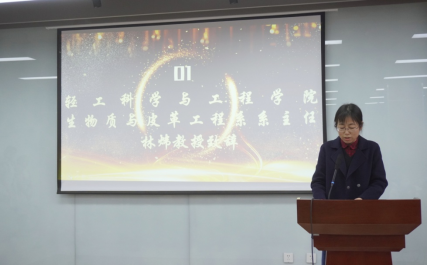 下午15:00,在颁奖典礼正式开始前,以视频短片的方式回顾了近十四年来专业奖助学金的设置及颁奖情况,让全场嘉宾与同学们对行业、企业及校友长期以来对我校人才培养的支持与鼓励有了全面的认识与了解。随后,生物质与皮革工程系系主任林炜教授致辞,林教授表示专业奖助学金的设立是设奖单位、个人、杰出校友及我院领导对学生取得成绩的充分肯定。今年恰逢学院皮革学科创立100周年,学院以“赓续使命、继往开来、凝心聚力、共谱新篇”为主题开展系列活动,同时林教授以此次颁奖典礼为契机,鼓励师生一同努力,立德树人担使命!为党育人、为国育才! 并对同学们提出三点希望:第一、刻苦钻研、勇于创新,更高维度发挥自己的特长,注重培养批判性思维与创新性思维;第二、注重政治素养的培养,做好服务国家与行业的准备;第三、热爱专业,注重综合能力的提升,通过专业学习、科研探索及技能培训,保持探究问题的好奇心及解决问题的行动力。最后,林教授引用爱因斯坦说过的名言“大学教育的价值不在于记住很多事实,而是训练大脑会思考”,以此鼓励各位同学在今后的学习中学会独立思考。