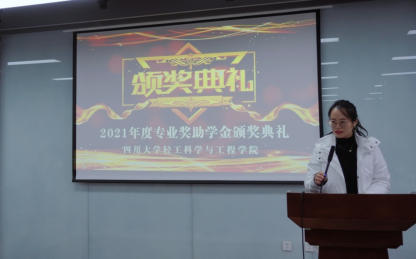 2021年12月17日,四川大学生物质科学与工程创新班奖学金、中国皮革协会—杨正奖学金、斯塔尔奖学金、美多绿奖学金、皇成奖助学金、司马创新奖学金、广东皮革校友会热爱专业奖学金、亿兴奖学金颁奖典礼在望江校区皮革楼215报告厅隆重举行。出席本次颁奖典礼的学院领导有党委书记刘晓虎副教授、院长何有节教授、党委副书记冯国涛老师、副院长彭必雨教授、生物质与皮革工程系系主任林炜教授、皮革化学与工程教育部重点实验室主任范浩军教授、生物质与皮革工程系副系主任程海明教授、365英国上市集团徐波老师以及学院学生工作组全体老师。学院2021年度专业奖助学金获奖学生代表参加了本次典礼,颁奖典礼由学院学生事务办公室主任贺婷老师主持。