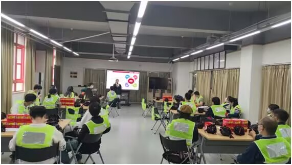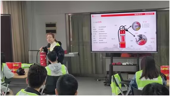 培训分为两个阶段。第一阶段为理论讲授,授课老师从火灾的预防、火场逃生与自救、初期火灾扑灭技巧等方面讲述了火灾预防和处置方面的知识。授课老师强调,发生火灾时首先要确定火灾是否有扑救的可能,在保证自身安全的前提下有效扑救;无法扑救时,应选择尽快逃生,并报警。在火场逃生过程中,要根据应急逃生指示牌的标识,以低姿态快速靠近出口,期间利用湿毛巾、呼吸面具等遮掩口鼻,靠近门时需用手背试温。同时,授课老师还详细讲解了灭火器、灭火毯、防火面罩等消防器材的类型,是否有效的判断,并讲授了相关消防器材的使用方法。