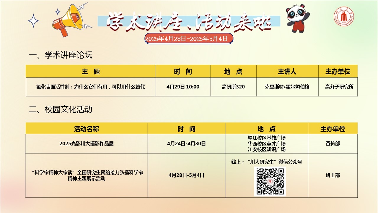学术讲座论坛及校园文化活动预告(2025年4月28日-2025年5月4日)