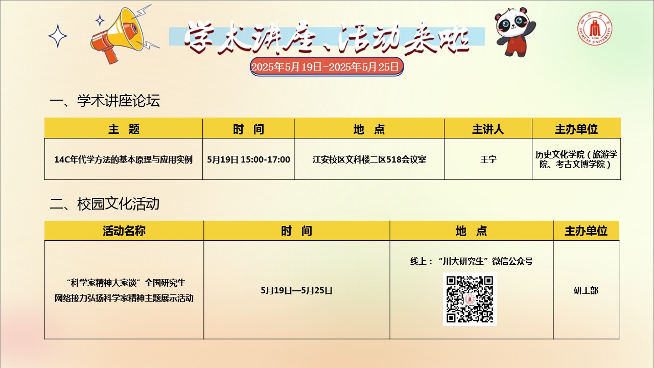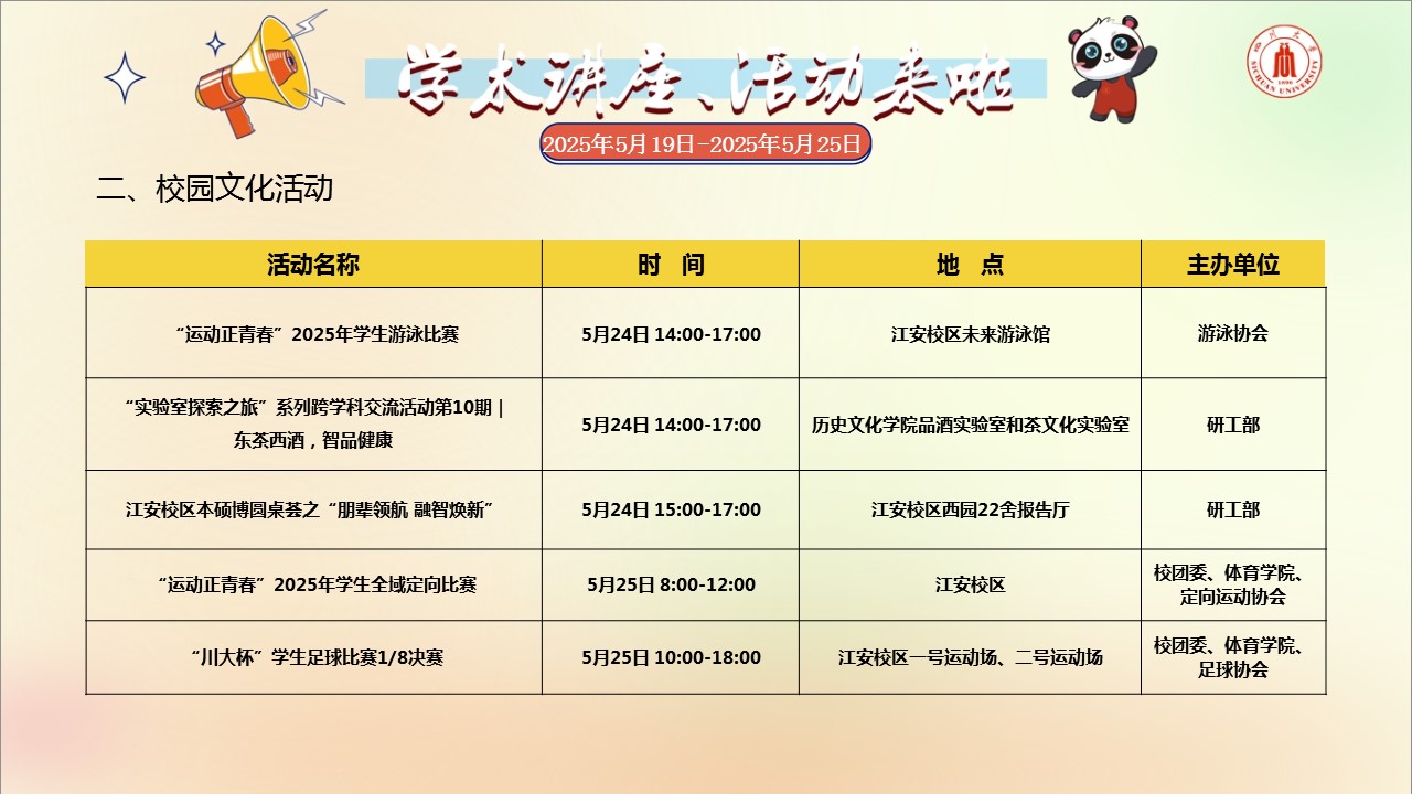 学术讲座论坛及校园文化活动预告(2025年5月19日-2025年5月25日)