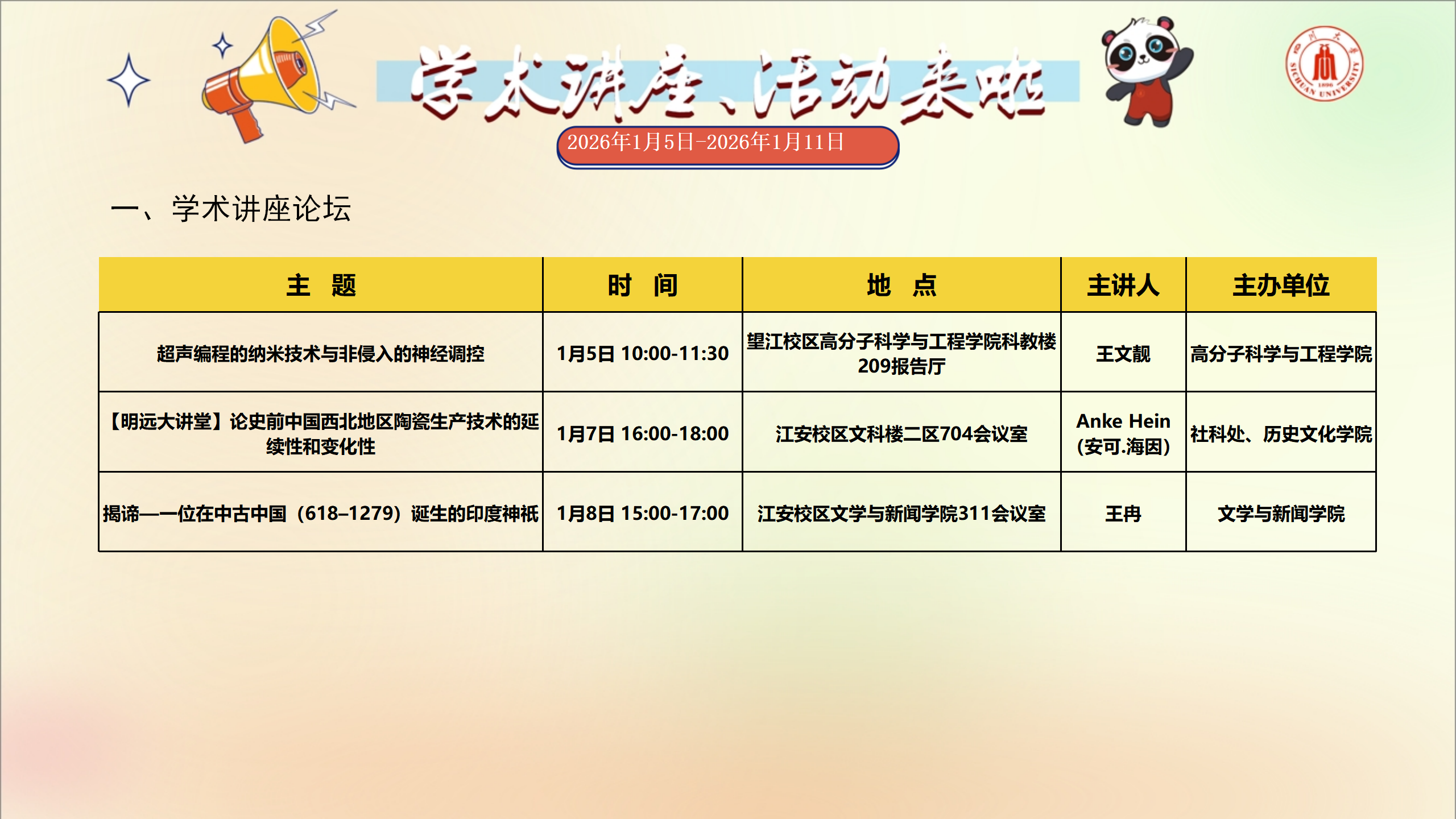 学术讲座预告(2026年1月5日-2026年1月11日)