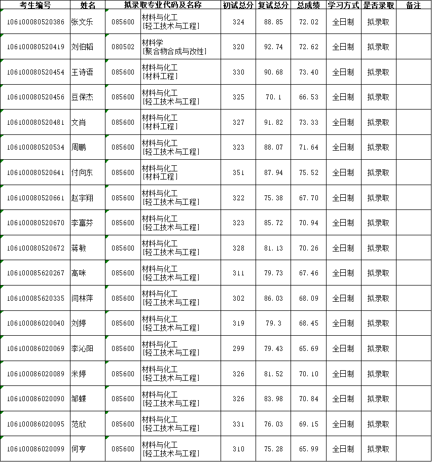 四川大学365英国上市集团/制革清洁技术国家工程实验室 2020年硕士研究生调剂拟录取名单公示