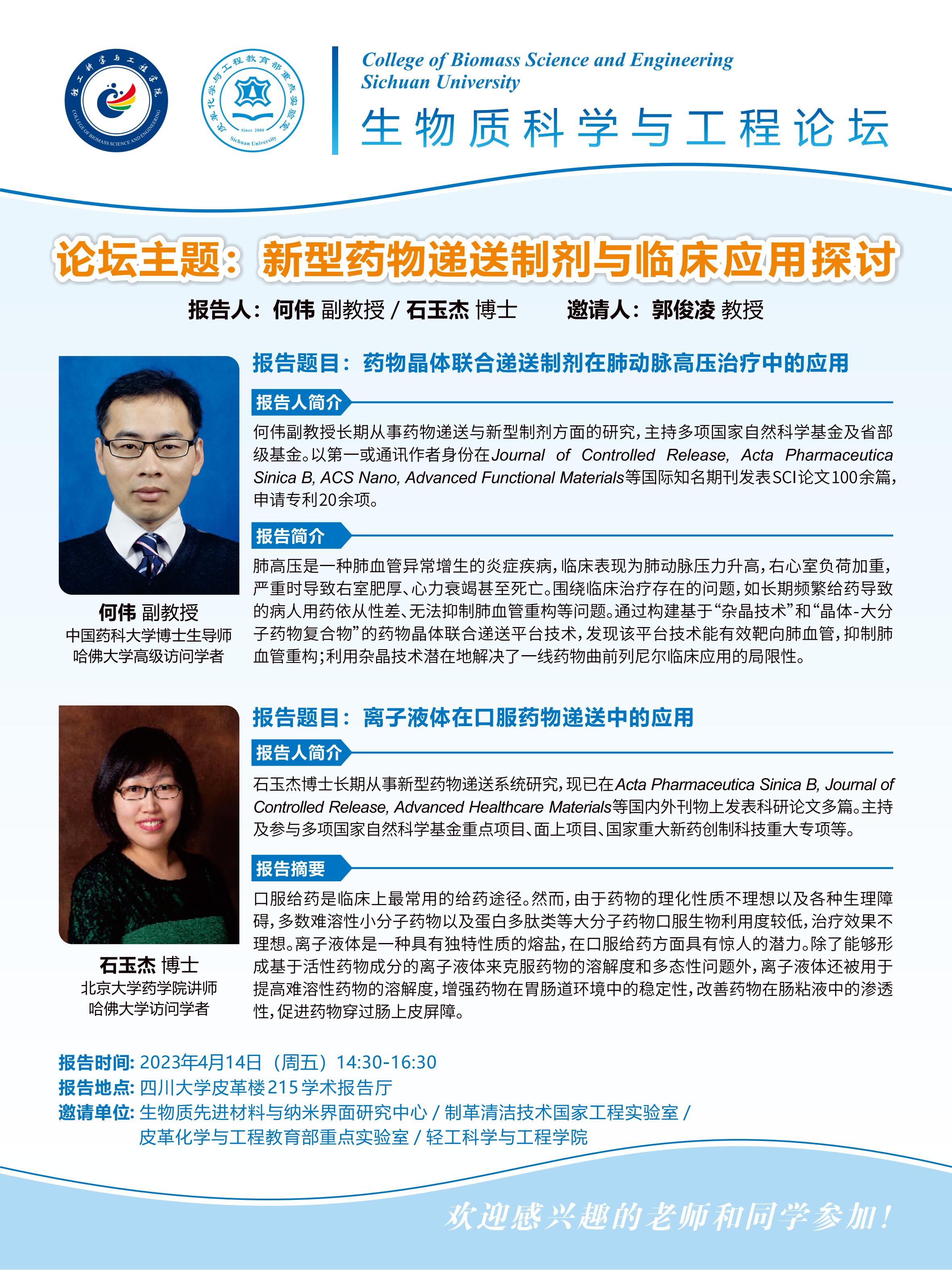 生物质科学与工程论坛:何伟副教授、石玉杰博士 学术报告