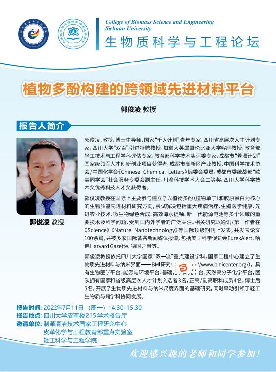 生物质科学与工程论坛:郭俊凌教授 学术报告
